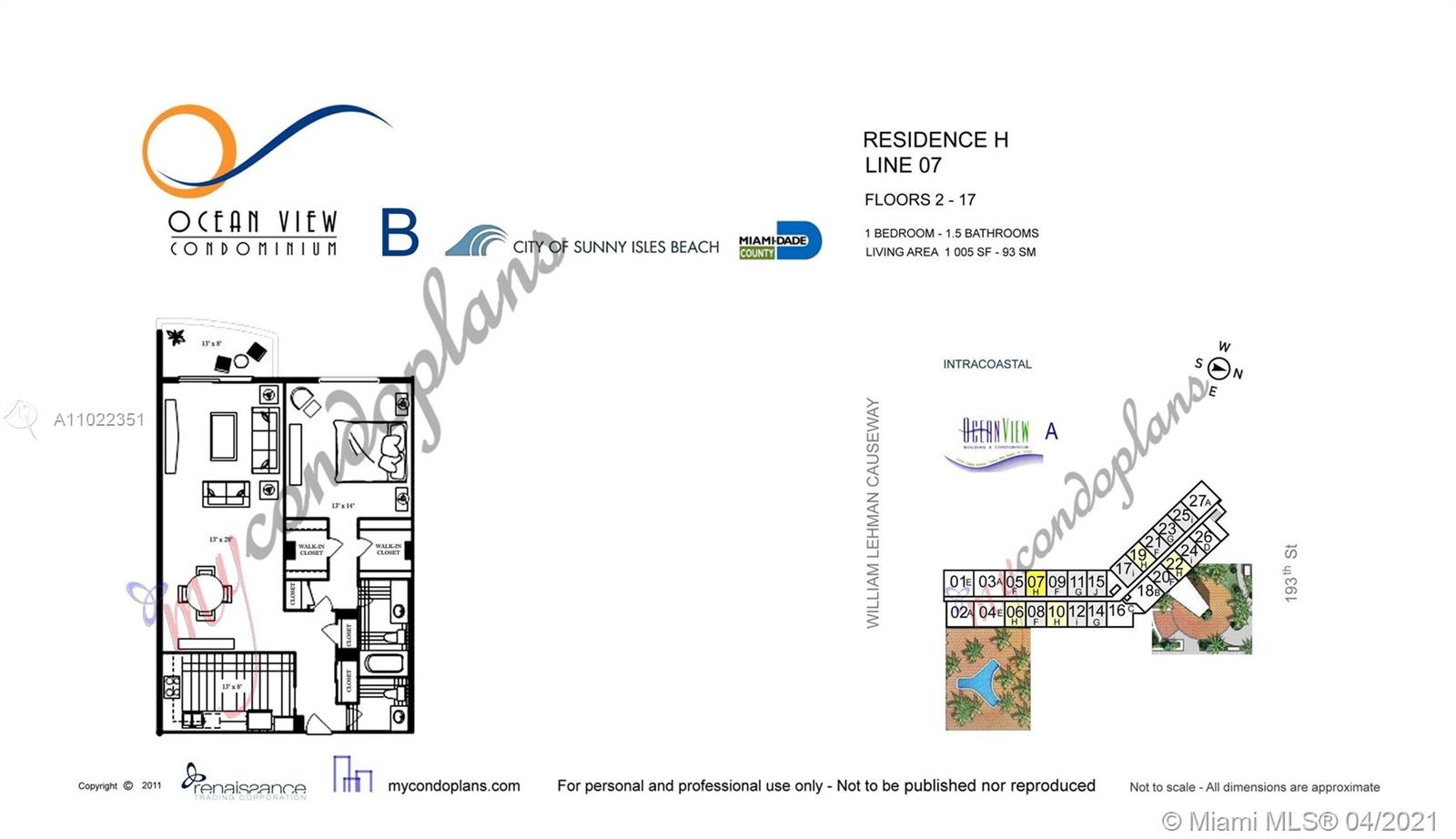 Come and see this great unit at Ocean View Condo, oversized floor plan, walk to the beach and everything else. 5 min. from Aventura Mall. Freshly Painted in great conditions and price. Tennis court, Gym, meeting room and more. Lots of savings (cable-internet- AC are inc.)