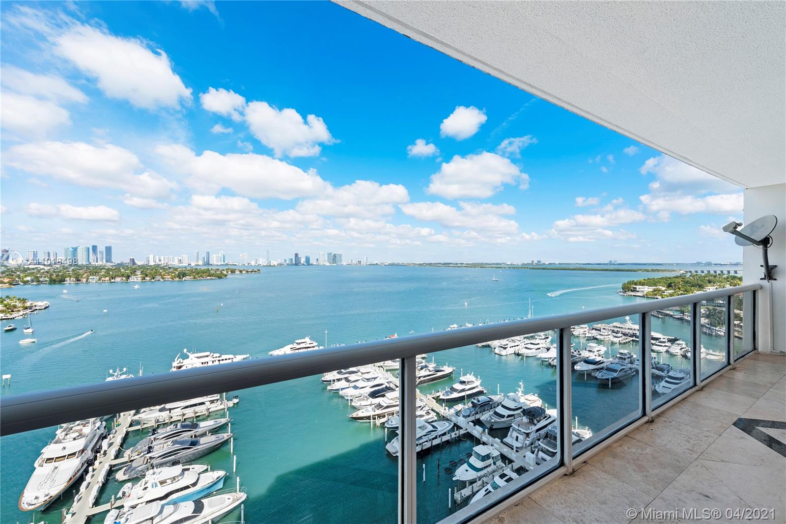 Great rare opportunity to own a southwest-facing corner residence with stunning unobstructed vistas of the bay and skyline. 1802/04 offers a spacious floor plan with 3 terraces and floor-to-ceiling glass windows throughout. Renovation opportunity to create your dream condo at Sunset Harbour, a full-service building with pool, gym, 24-hr security, valet, and marina in an ideal bayfront location brimming with dining and entertaining experiences. Includes 2 deeded parking spaces.