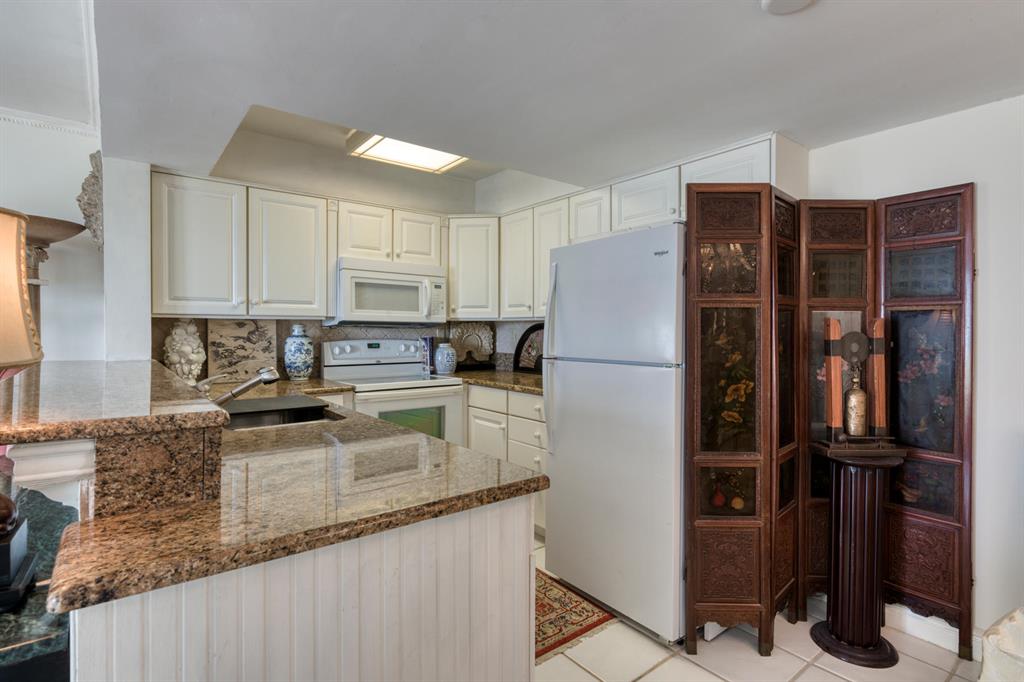 Across the street from the intracoastal. Apartment has been beautifully renovated with tile floors. Remodeled kitchen and baths. Mirrored on both sides of doors into the den. All impact glass, lovely pool, assigned parking space.