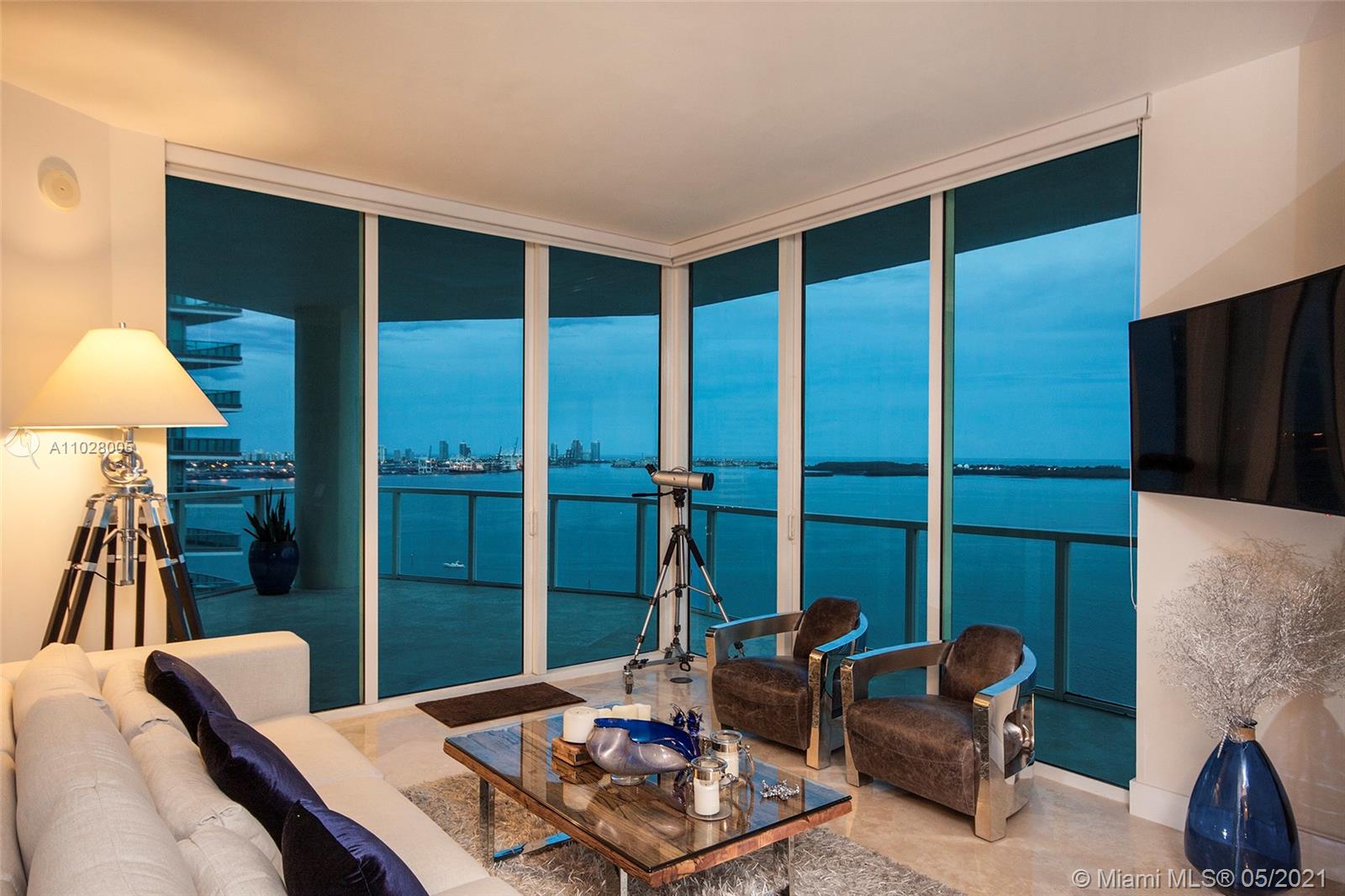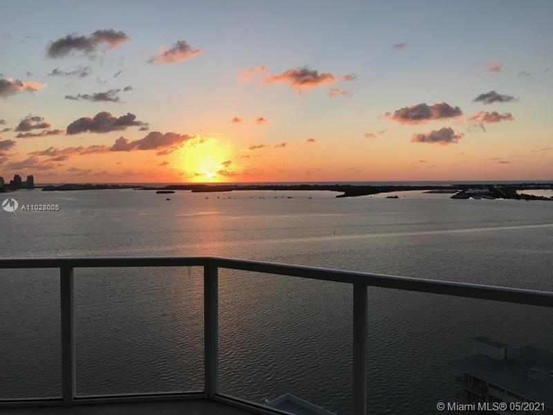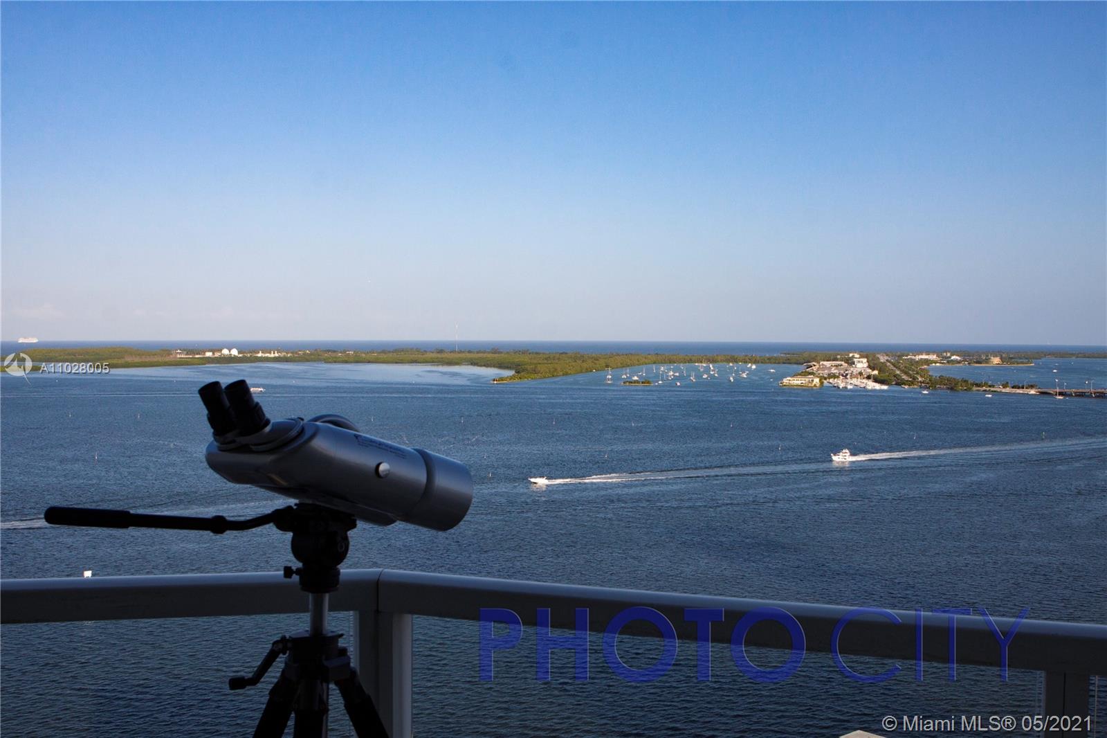 This Tower Suite at Emerald features a unique curve-of-the-earth panoramic views of Biscayne Bay and city skyline. The 10 ft high impact floor-to-ceiling glass windows connect the modern interior space with the private 447 sq ft wrap-around balcony that serves as a fabulous city and ocean lookout for a total area of 2,041 sq ft. The unit features stainless steel Sub-zero appliances, European kitchen cabinets, marble & laminate wood floors and private balcony on 2nd bedroom. Upscale resort-style amenities with 24 hrs. security, valet parking, concierge, rooftop infinity edge pool & spa overlooking the city and bay, state-of-the-art fitness center. Located in the heart of Brickell financial district, just minutes from AAArena, Brickell City Centre, Bayside Marketplace, Miami Airport.