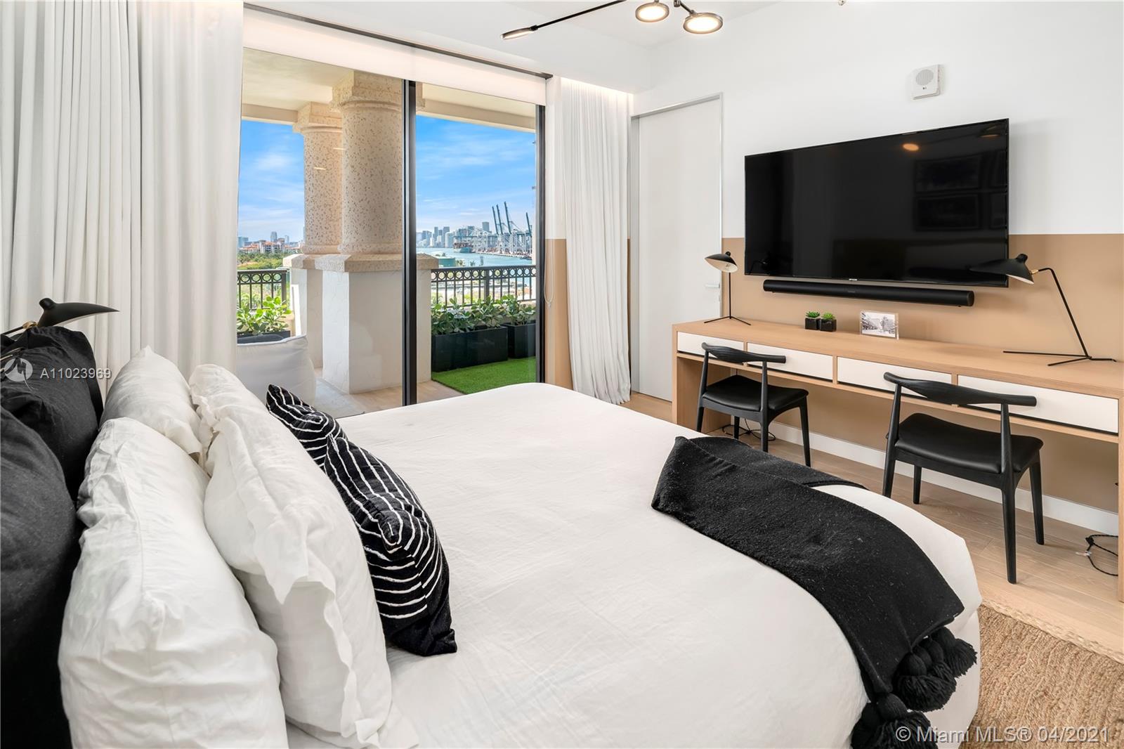 Live in Fisher Island’s newest & best full-service building in this exquisite brand new 5 bd breathtaking estate. Sold fully furnished by renowned interior designer Sam Robin, truly a one-of-a-kind masterpiece. Enter through a private elevator entry to extraordinary views of the Ocean, South Beach, Fisher Island & Downtown Miami. You are greeted by wide-plank natural European Oak wood flooring throughout, 10ft floor-to-ceiling windows, views from every room, an open layout gourmet kitchen by BOFFI w/Miele appliances & SubZero Refrigeration + Wine Cooler, throughout you will find white lacquer Italian Lualdi doors. The principal suite fit for royalty features a BOFFI master bath w/BookMatched Marble, custom floating tub & the walk in closet of your dreams. Enjoy 6-Star service & amenities.