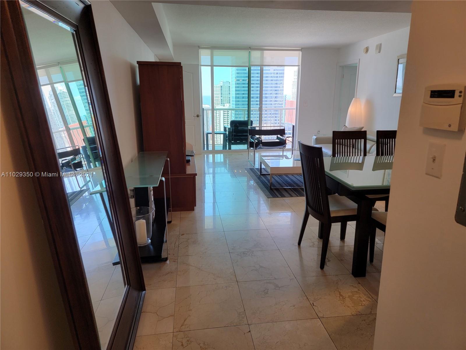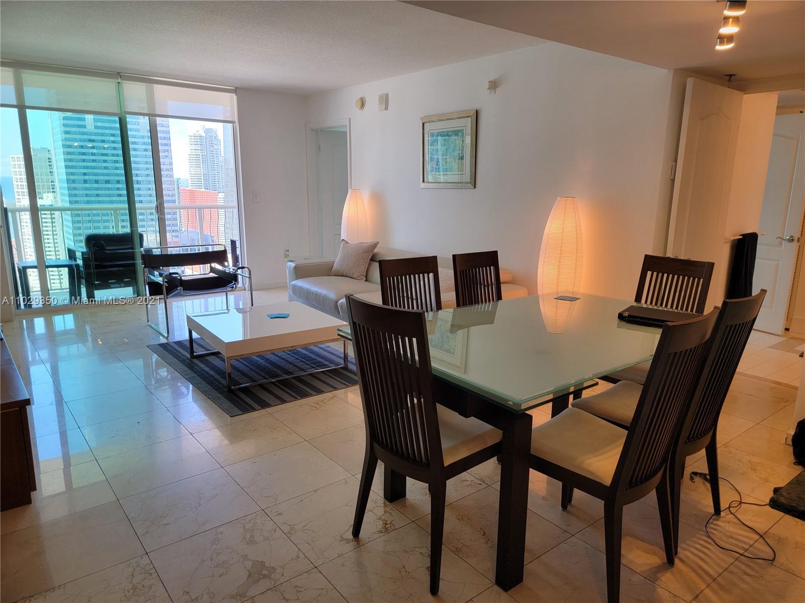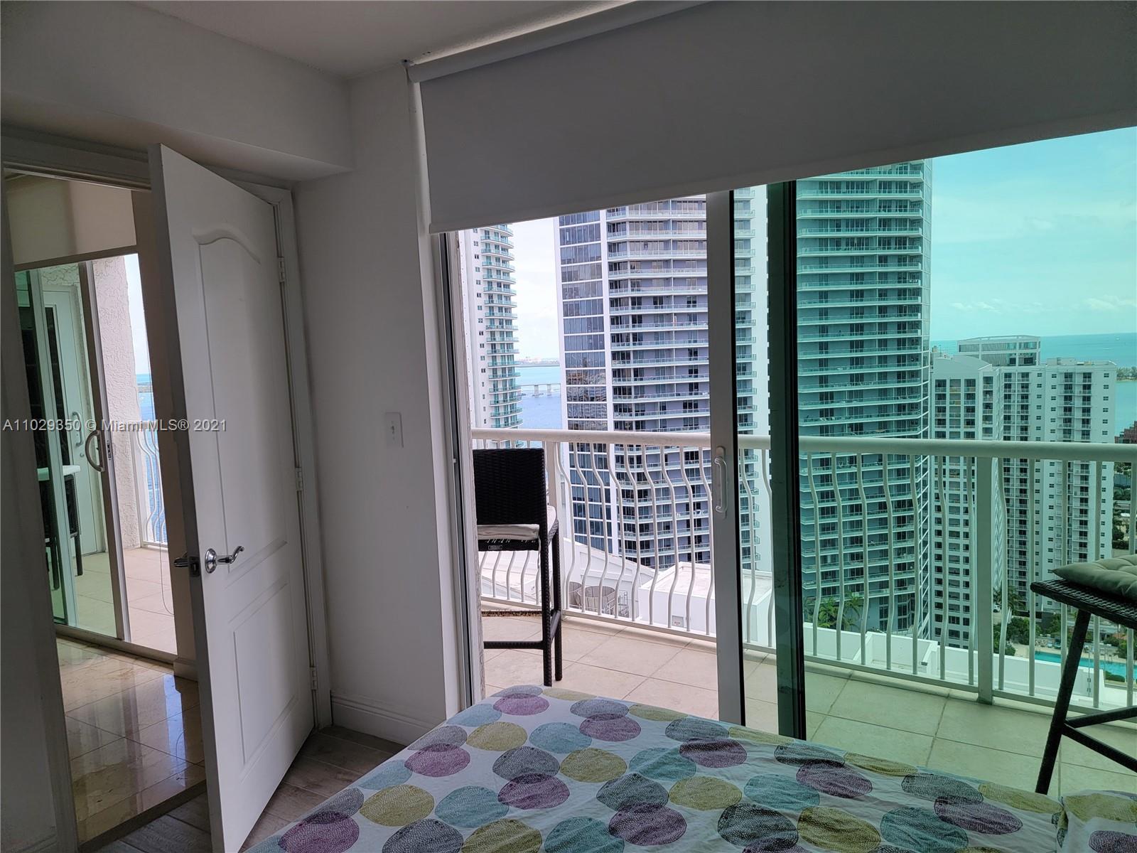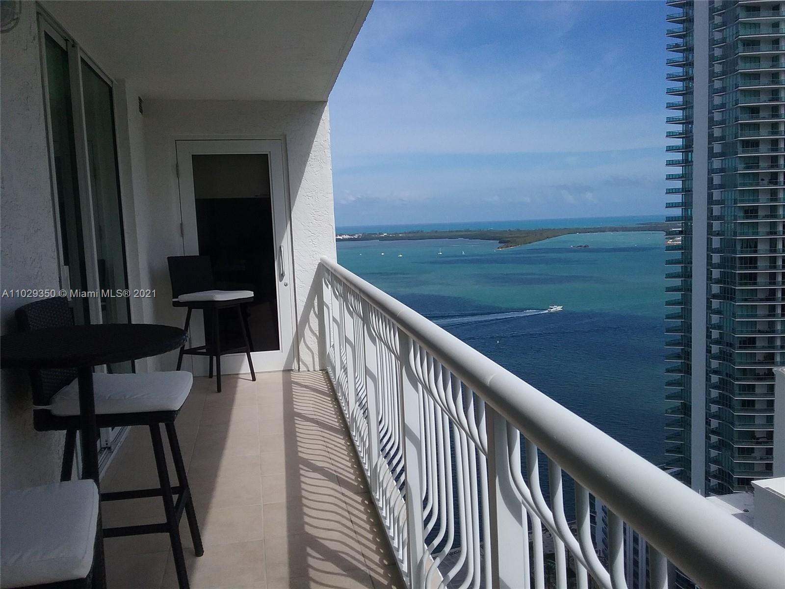 Great income investment ..no rental restrictions.Great location in Brickell, 2BR,2bath,two queen size beds, marble and porcelain floors throughout,water view,35th floor, Gym, spa, parking garage.Cable and internet. Walk to restaurants and bars in the Brickell area. Water views , Italian cabinetry with granite counter top, master bedroom has ample closet space.Washer and dryer and fully equipped kitchen. Great amenities: 1 assigned parking space on the sixth floor, two pools, jacuzzi, fully equipped gym and lounge room children playroom. Short term rental allowed no rental restrictions, . Walking distance to supermarkets, restaurants, Mall and stores. Located in the heart of Brickell Downtown Miami.