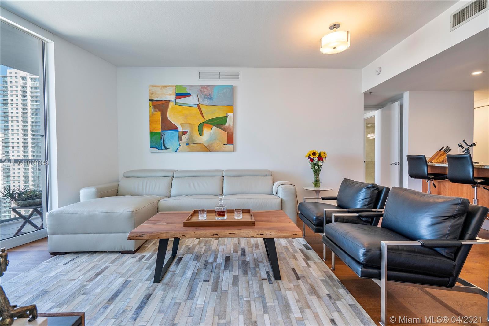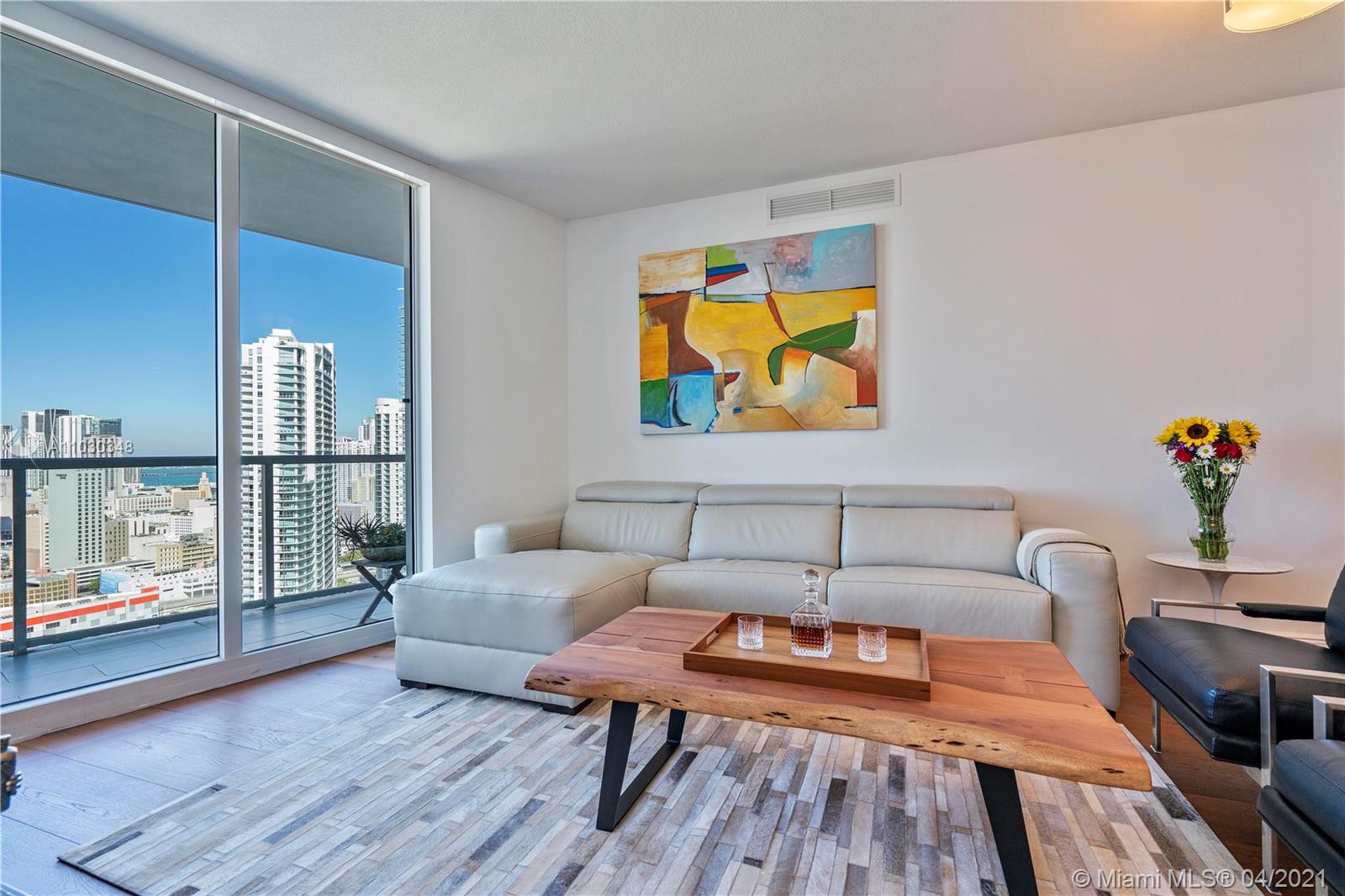 Come live in this beautifully updated and turnkey unit in the heart of Brickell, which offers breathtaking panoramic views of the Biscayne bay and the Brickell skyline from the 32nd floor. This two bedroom and two and a half bathroom split unit has been substantially upgraded with; wide plank cherry hardwood floors throughout, marble floors in all bathrooms and showers, high end vanities in bathrooms, American standard one piece European style toilets, remote controlled blinds in living room and black outs in both bedrooms, customs California closets, Stainless steel appliances, granite kitchen counters, wine rack and temperature controlled wine cooler, LG high end W &D. Latitude on the river offers many amenities and it is only steps away from Brickell city center and other attractions.