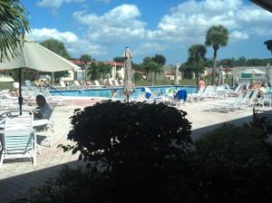 Beautiful Single Story First Floor Unit with tile through out. It has it own Laundry with stackable washer and dryer. 2nd bedroom has been converted into Living area so it is very spacious. This is a convertible unit which expands the living area even greater. It is much bigger then tax & property assessor records show come see for yourself.Furniture can stay or be removed! Unit is located just feet away from pool and has great water views! Come see this beautiful unit. Refrigerator and Washer & dryer are less then a year old and the A/C has been fully maintained.New roof in 2011 and a newer front door! This is a Must See Unit! The community is a 55 and older community that has all the amenities from Pools, Billiard, Card Tables, Shuffle Board, Auditorium, Gym, and much much more!