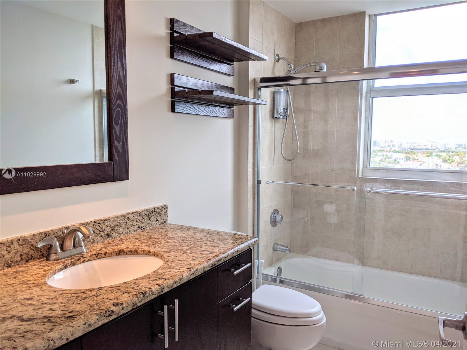 Enjoy beautiful sunrises and sunsets from this 2 bedroom, 2 bath corner unit. Intracoastal and city views through the floor to ceiling bay windows, tile floor throughout, open kitchen with granite countertops, washer and dryer inside unit. 1 assigned covered parking space. 1800 Biscayne Plaza has a modern lobby, fantastic pool area and fully equipped gym, and 24 hour security. Located in the new upcoming area of Edgewater. Close to the performance arts, American Airlines Arena, Bayside, the Art District and a few blocks from Downtown Miami!