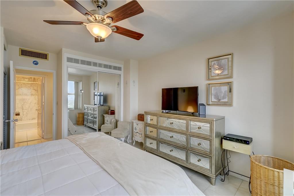 INTRACOASTAL & OCEAN VIEWS!! Move In Ready. Updated kitchen and bath with incredible views from the 16th floor. Pretty tile throughout. Electric fireplace in living room. 15 min walk to the beach. Swim in a 60' x 30' heated pool which gets sun all day. Shady areas nearby. Building being upgraded with new GLASS BALCONIES, Fresh new white paint and a new wired fire alarm system. Seller to pay all assessments at closing. Live in a resort like setting across the street from the beach. Full amenities include on site maintenance, 24 hour private guarded security, covered driveway entrance (porte-cochere), gym, bocce ball, shuffle board, separate clubhouse on the intracoastal. NO RENTING, Age 55+, $52,416 min income, no land lease, fiber optic cable & wifi included in $546 maint.