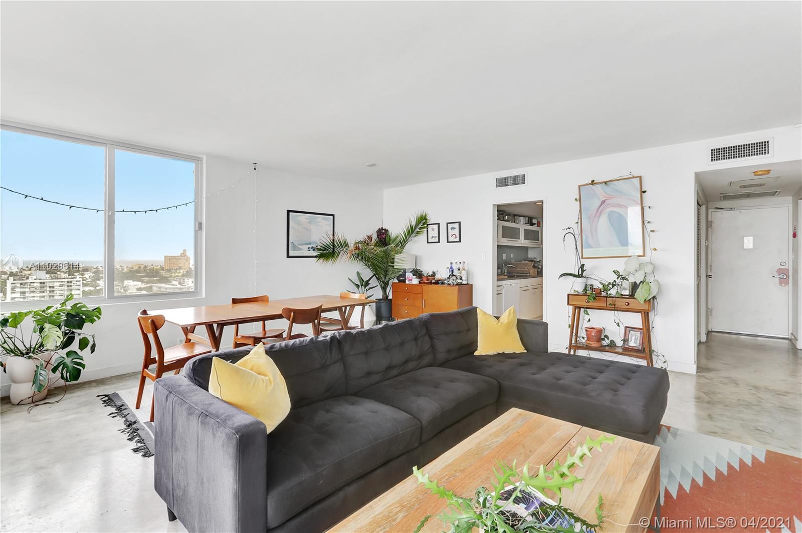 Over-sized 1 bedroom, 1.5 bath at the Mirador 1000, 14th floor overlooking all of SoBe with views all the way to the ocean. This unit comes with new high-impact windows and doors, 3 large closets, 2 are walk-ins, along with a linen closet. Apartment has polished concrete floors, updated kitchen, and a balcony. Unit comes with 1 assigned covered parking space ($20K value). The Mirador is a full service building that includes a doorman, gym, and pool. Please see following link to access the 3-D tour https://soflo-rephotos.view.property/public/vtour/display/1819074#!/matterport