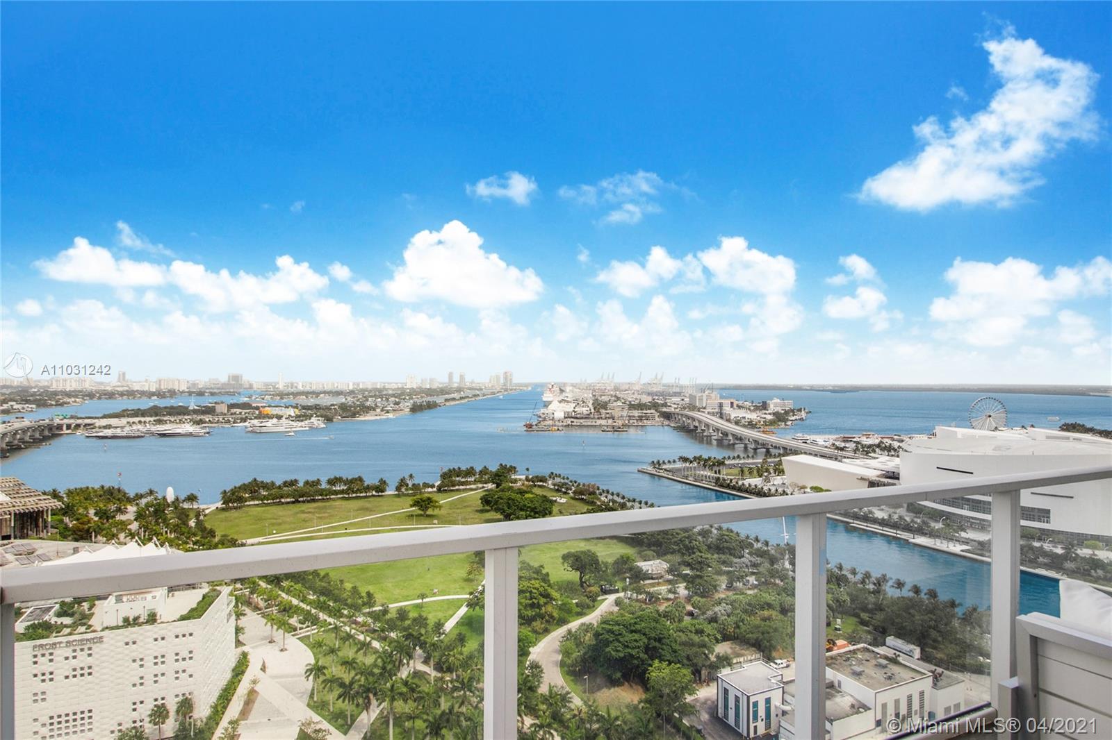 Two-story, east-facing corner two-bedroom at the architecturally significant Ten Museum Park condo. This upgraded unit sparkles! The best of downtown Miami is just outside your door and the dramatic views of cruise ships, Miami Beach and the bay and ocean are unparalleled. White porcelain floors, generous closet space, huge terrace. And 2 parking spaces. Membership to La Prairie Spa included.