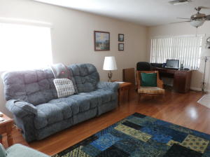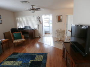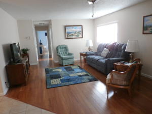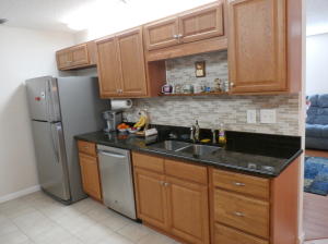 Move right in! Lovely Corner unit 2 bedroom 2 bath with upgraded kitchen, flooring and more. Beautifully remodeled kitchen with stainless appliances, glass tile backsplash, new cabinets with drawers and tile floor. Granite counter vanities in bathrooms, Wood laminate floor in living areas. Shutters on windows, ceiling fans, new water heater and enclosed patio. Furniture negotiable. Active HOPA Community has manned security gate, clubhouse, free golf for owners,tennis, putting green, fitness and more.