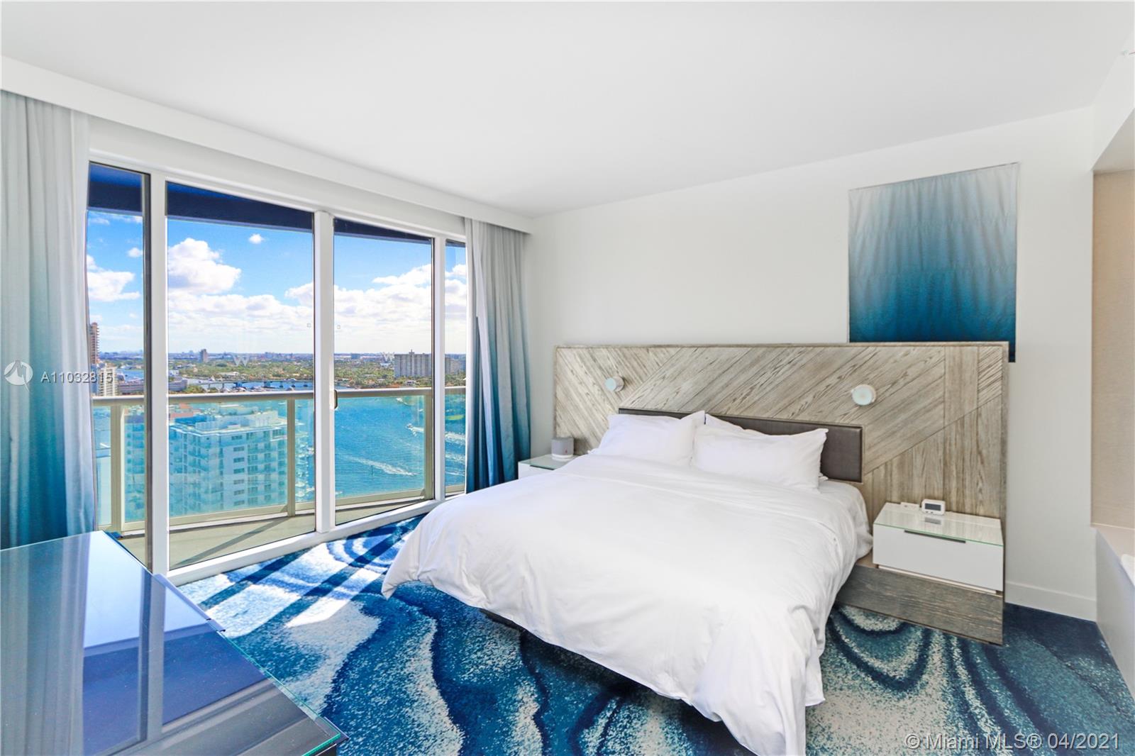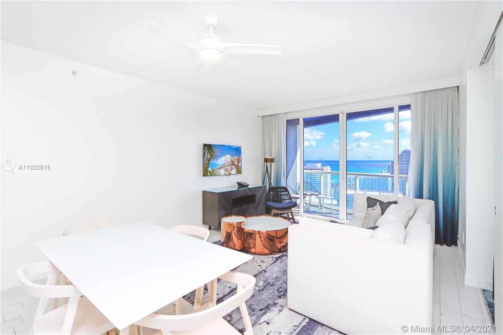 INVESTORS DREAM AT PRESTIGIOUS W HOTEL!Welcome to the most magnificent and tastefully furnished one bedroom and full one bathroom with direct ocean views from the living room and picturesque intracoastal sunset views from the master bedroom. Come live directly on the beach with all perks of W Hotel. Open layout, spacious balconies and stylish design round out this turnkey condo, complete with washer/dryer, full-size kitchen and top-of-the-line appliances. Enjoy resort-style Living amenities including 2 pools (east and west), AWAY Spa, fitness center, Living Room bar, Sushi Bar, Steak 954 and more.You can have it rented via hotel program while you are away and have great income property and enjoy the best water views from this unit while you stay. Best line and lowest price in the building.