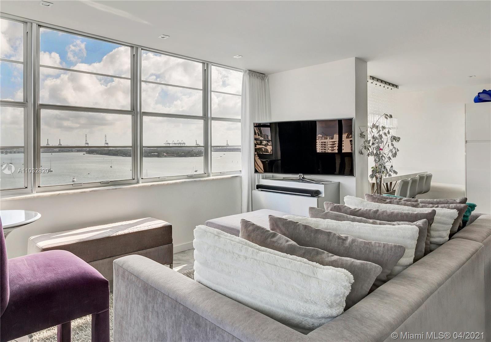Completely remodeled & re-imagined corner unit high above Belle Isle with sweeping bay & skyline views from every single window. Super sleek, super unique, this is a one-of-a-kind unit has been completely reconfigured to provide an oversized living area, unbelievable closet space, and a small 2nd bedroom/office/den, perfect for an overnight guest. An open plan gourmet kitchen is at the center of it all with a custom Italian cabinetry, a huge leathered granite island, & top of the line appliances including integrated fridge, induction stove, and under counter wine cooler. Recessed LED lighting, pocket doors throughout, electric blinds and absolutely stunning marble floors. Unit comes with a coveted 2nd floor covered parking space. Tenant occupied til mid-October. 24-hr notice is required.