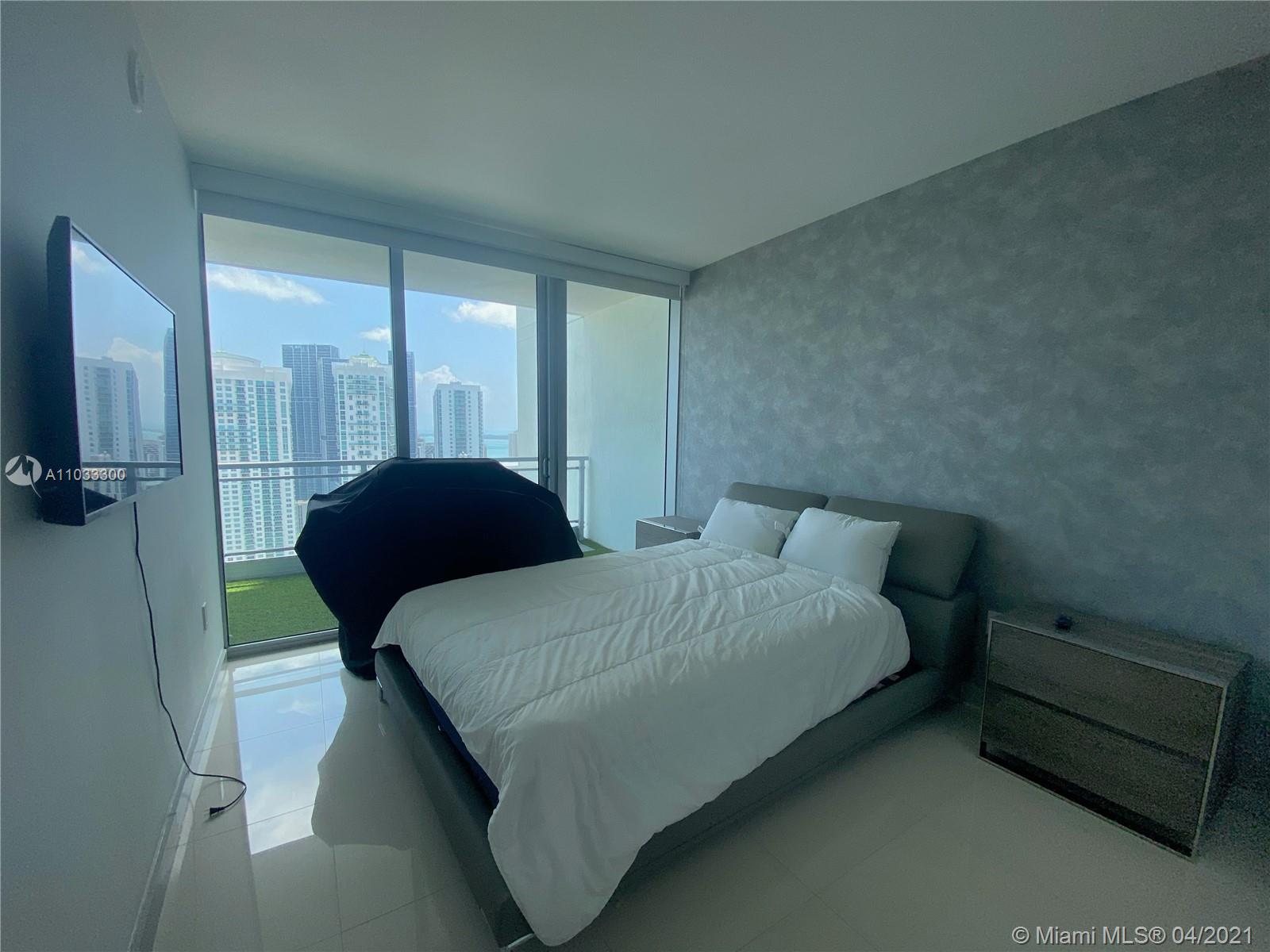 Designer renovated luxury condo with white porcelain tile floors throughout, stunning waterfall island, Smart appliances, wine cooler, custom cabinets and walk-in closets with LED lights, high-quality washer and dryer, custom built-in TV entertainment center with LED lights, imported high-quality synthetic grass for patio, newly renovated bathrooms, blackout shades, high hat lighting, Benjamin Moore Premium Paint, designer finishes throughout and much more. One of the best lines in the building with a direct view of the Miami River, the Bay, and the Miami skyline. By far the most stunning unit in the building! Unbeatable location. Will Not Last!