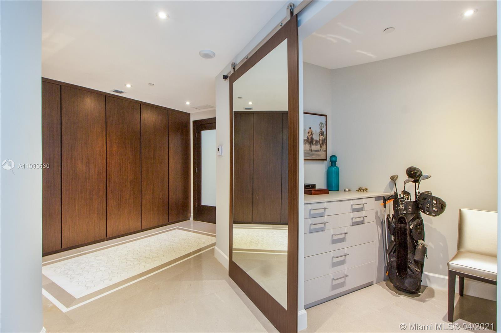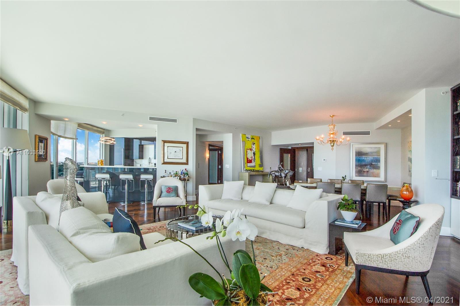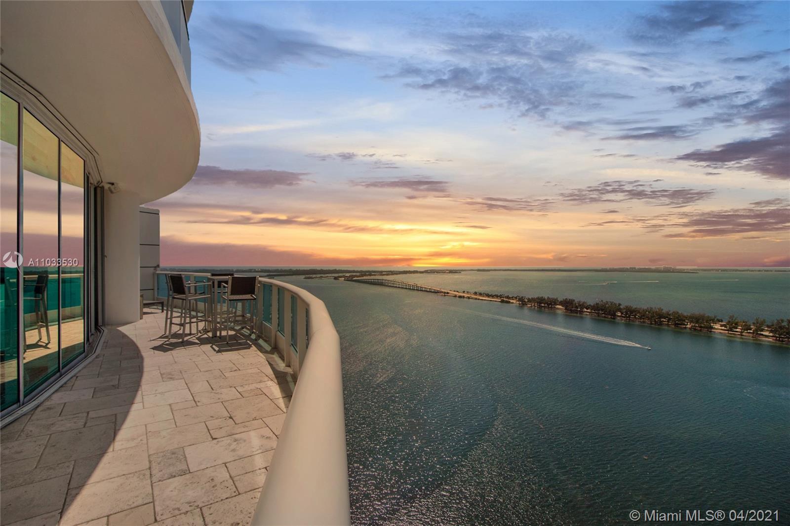 Impeccable designer remodeled residence, featuring unobstruted breathtaking panoramic views, over looking Biscayne bay. Upgrades include an open kitchen concept, blending in perfectly with the oversized family & dining rooms, including high-end appliances; Subzero and Wolf cook top, range and microwave. Private elevator foyer with beautiful Venitian plastered walls, rich finishes like mahogany herring-bone patterned floors, bled beautiful with contemporary finishes. All rooms offer water views & each room has direct access to the oversized wrap-around balcony. Designer furniture and art negotiable at a separate price, for a complete turnkey opportunity. Rare 3 assigned secured covered parking spaces included, as well as an additional storage unit convey with the property.