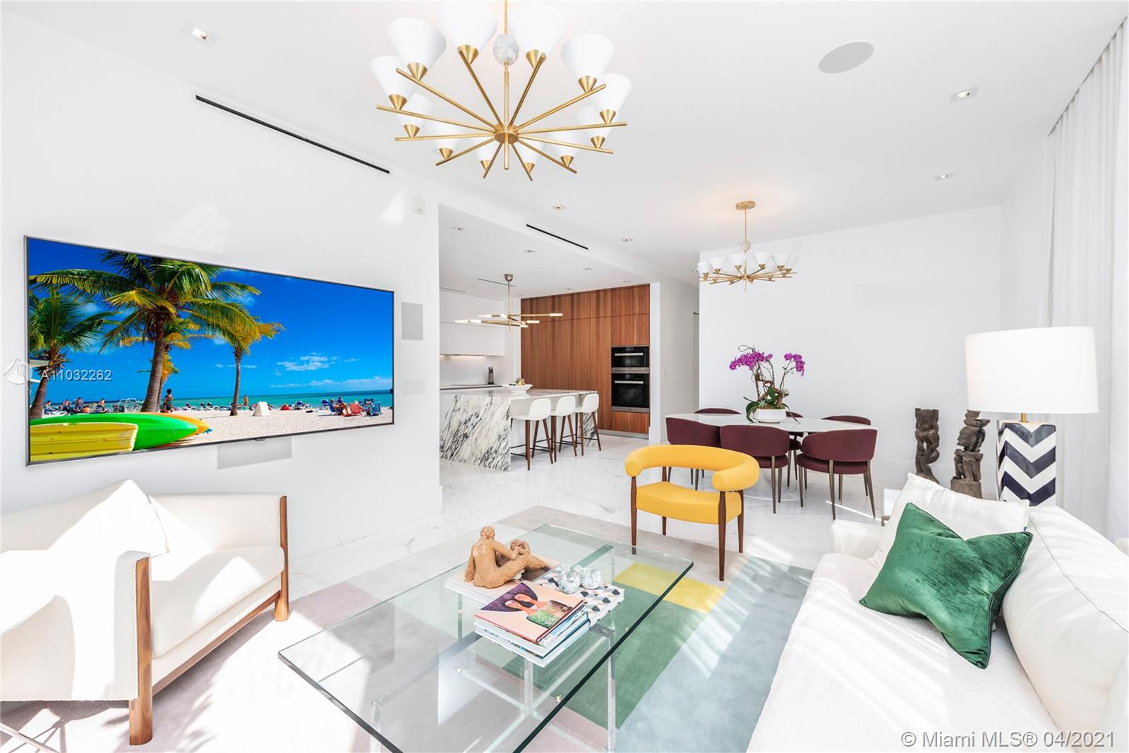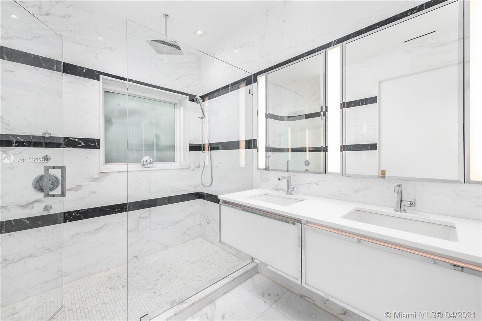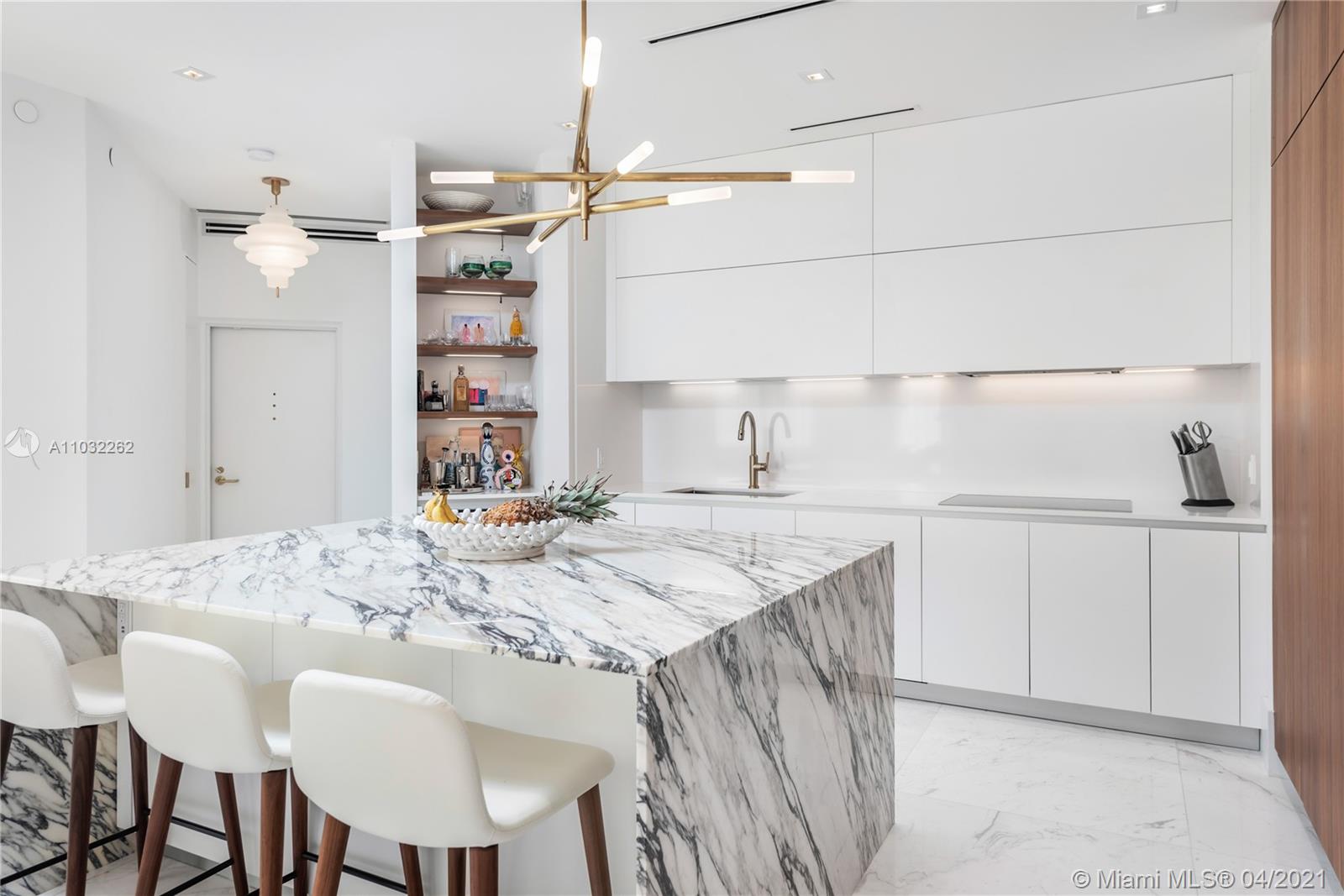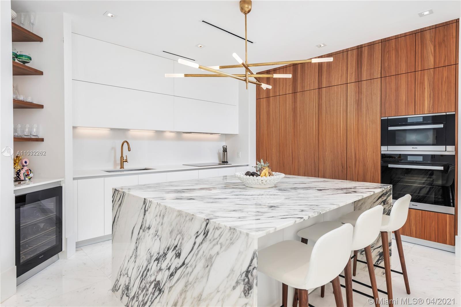 This designer masterpiece was a complete gut renovation, with reconfiguration of the room layout including enlarging the kitchen, re-sizing all three bathrooms, and reversing the existing living room with an adjacent bedroom to provide improved access to a large terrace with an outdoor kitchen and covered pergola area. This residence has been finished with white marble Opustone floors, CGI Estate top of the line hurricane impact windows and doors, Italian designed and manufactured kitchen with Miele appliances, oversized Calacatta marble waterfall kitchen island, Lutron smart lighting system, motorized linen drapes and sheer curtains, Hestan summer kitchen, New AC and more! A MUST SEE