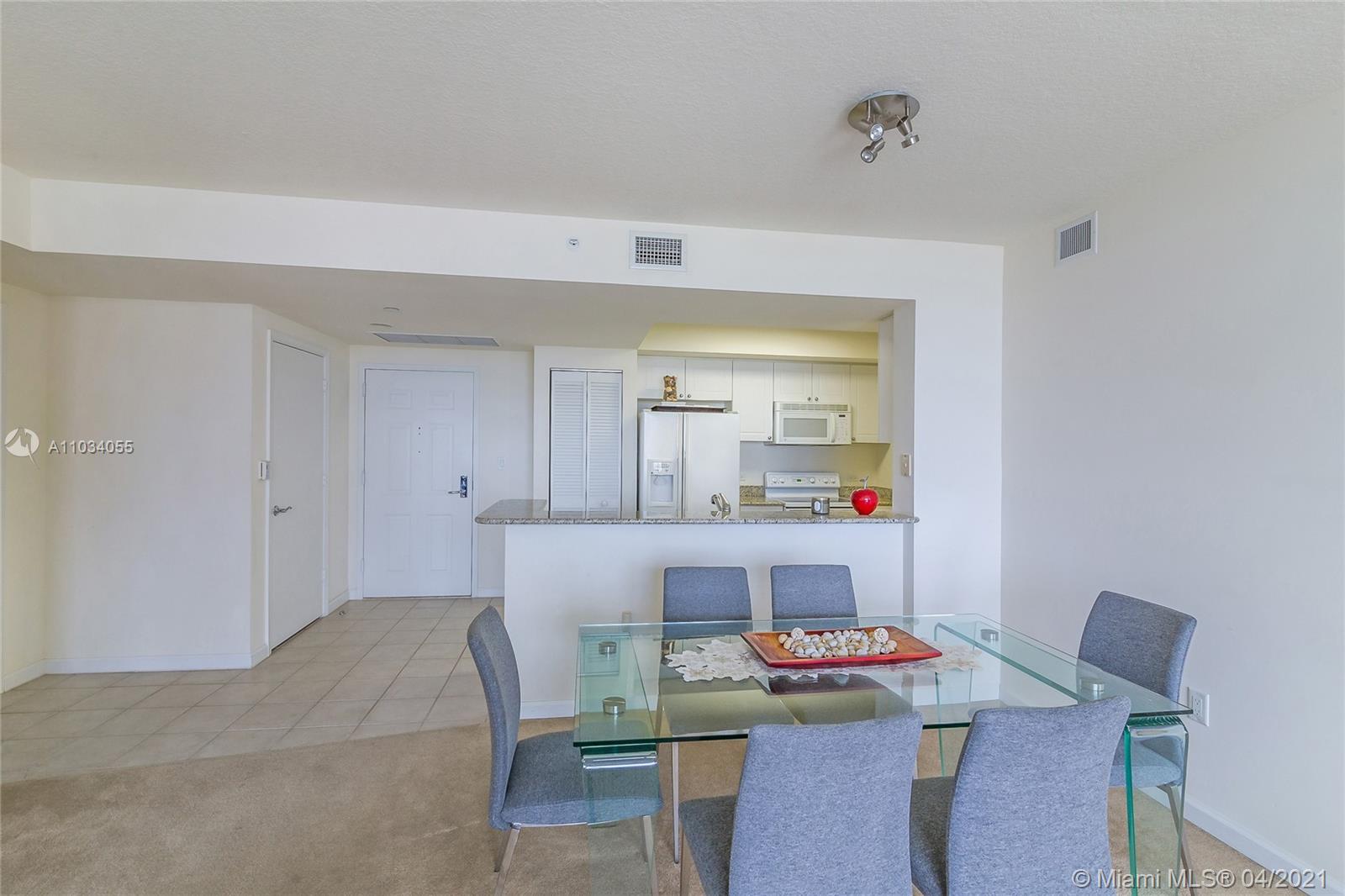 Aventura lifestyle converges around the private Golf and Country Club, the famous Aventura Mall and the city signature restaurants and parks. This well appointed 2-Bedrooms flat features city, park and Intracoastal views with plenty of natural light, granite counter tops, walking closet, laundry room and open balcony. The building offers services like valet, 24/7 attended lobby personnel, heated pool with Jacuzzi, recreational deck, landscaped walks areas, BBQ gazebo, playground, business center, meeting-social room, billiard room, fitness center with Yoga studio, massage and steam rooms. Walking distance to all conveniences, short ride or bike to the Beach, 3-miles exercise path,Tennis courts and Soccer and Baseball fields. Live, Work and Play!