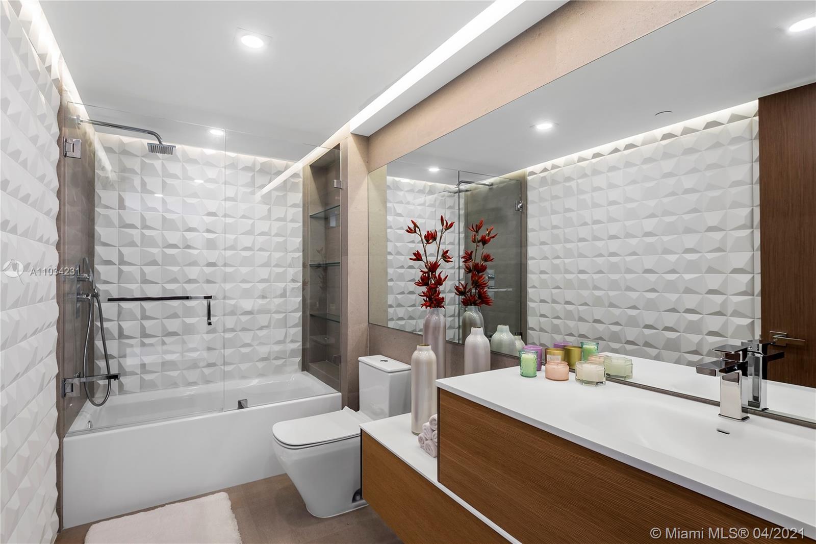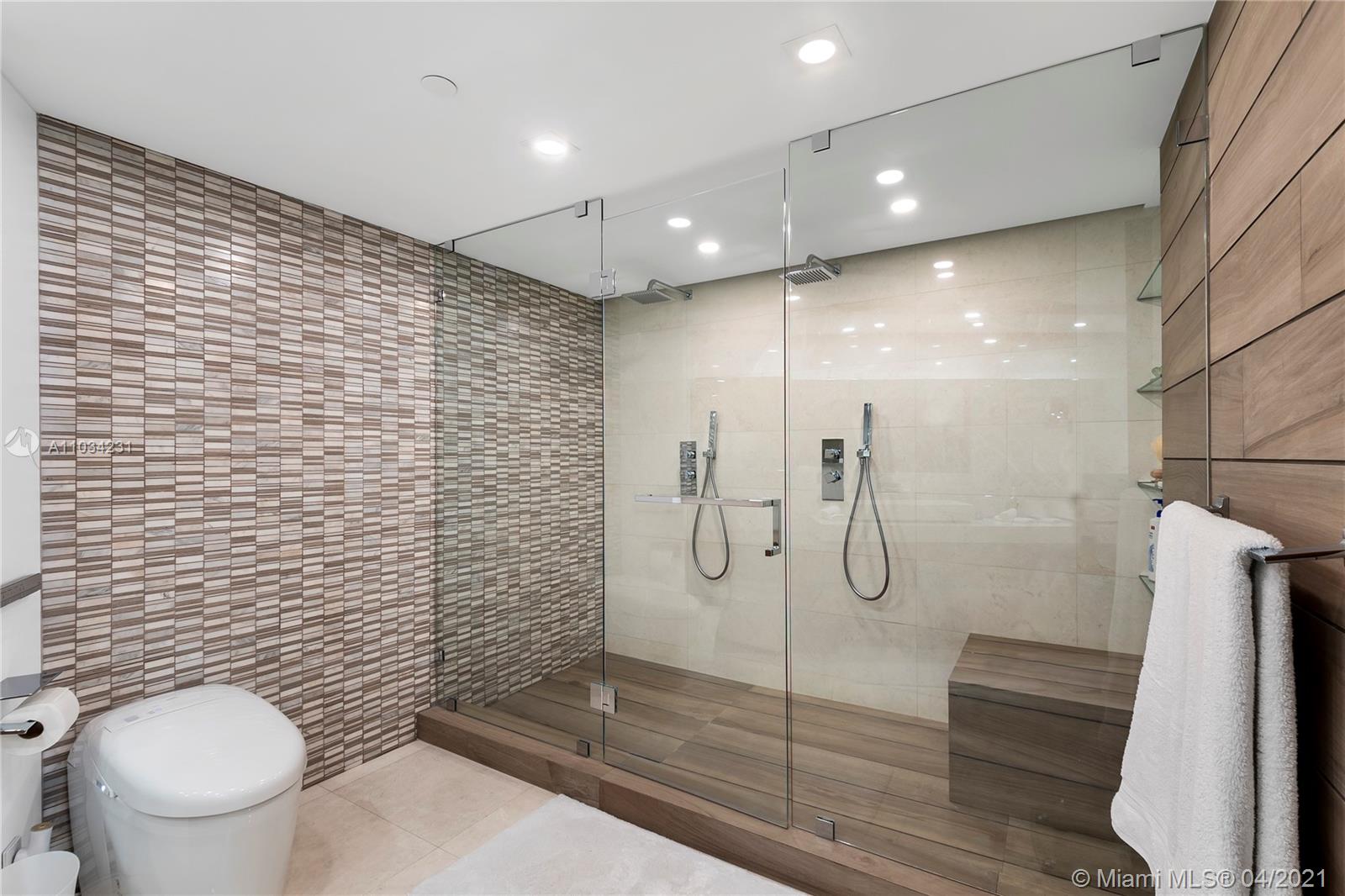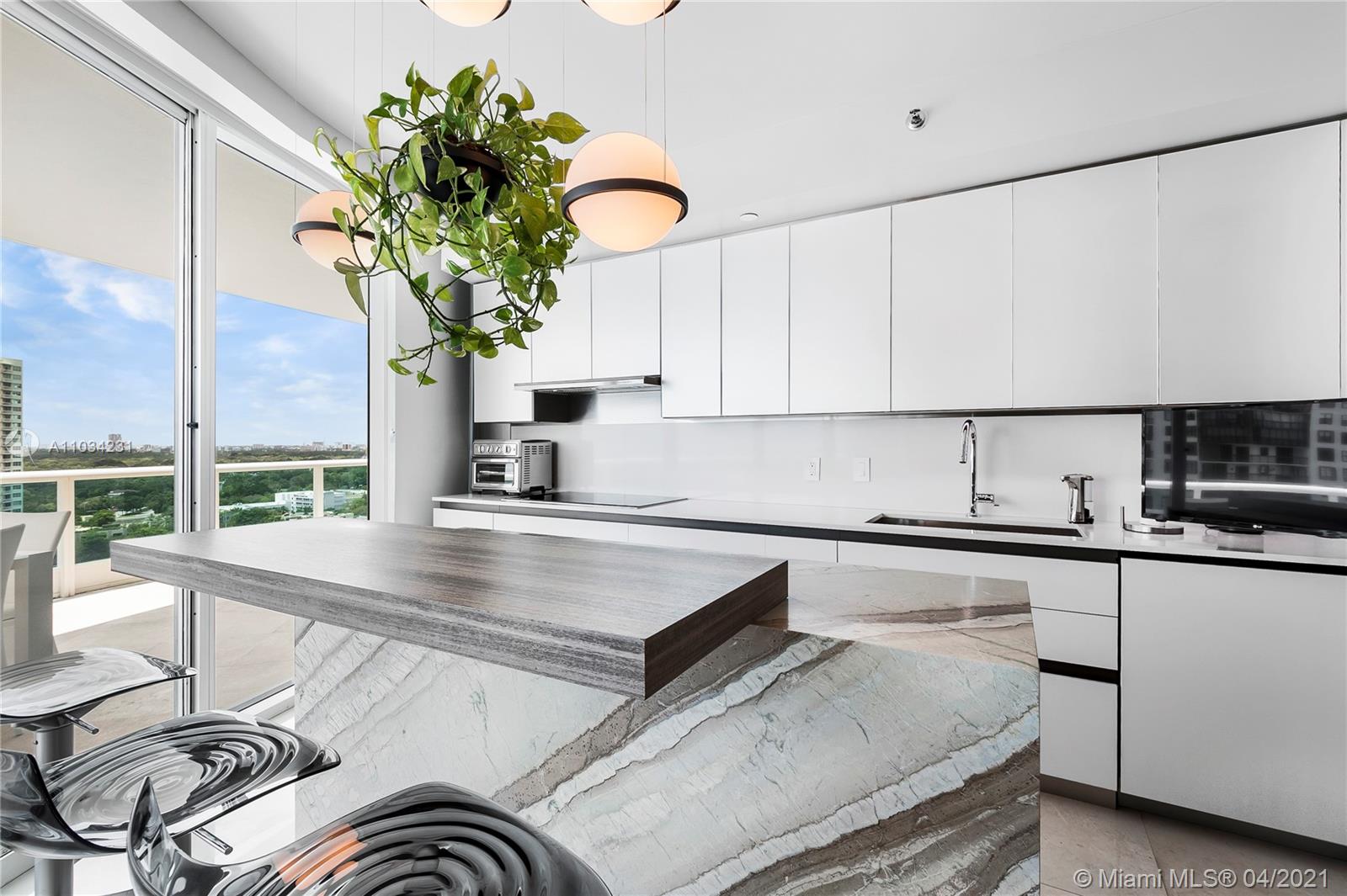 STUNNING and FULLY RENOVATED unit in the luxurious Bristol Tower. This unit is truly one-of-a-kind with exquisite finishes. Everything in the apartment was custom-made. Featuring: imported Italian woodwork for closets, built-ins, and cabinetry, marble counters, Thermador appliances, floor-to-ceiling windows, spectacular views from every room, gorgeous accent walls made of natural stone and wood, and a private elevator & foyer. Enjoy alfresco dining and gorgeous sunrise and sunset views from this unique wrap-around balcony, one of the largest in the building. Amenities: swimming pool, clubroom, fitness center, sauna & steam room, children's playground, complimentary valet, concierge, 24-hour security, cafe, & tennis court. 2 parking spaces + 1 storage - Light fixtures not included!
