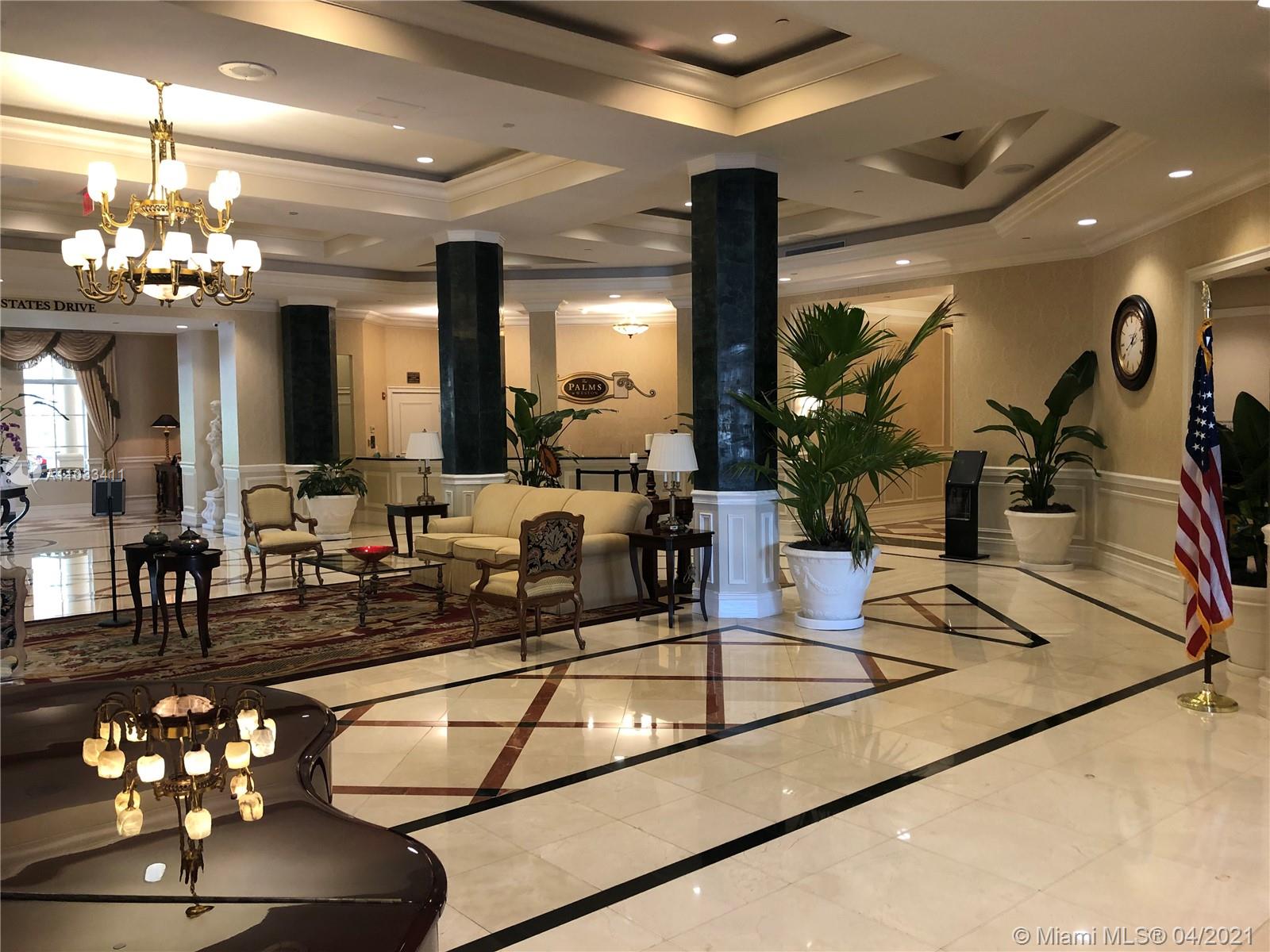 A 55+ COMMUNITY LUXURY LIVING THE PALMS AT WESTON. BEAUTIFUL 1,529 SF UNIT LIGHT AND BRIGHT. 2 BEDROOMS / 2.5 BATHS. LAUNDRY ROOM IN UNIT WITH TUB. LARGE KITCHEN CABINETS, GRANITE COUNTER TOPS AND STAINLESS STEEL APPLIANCES.. BALCONIES WITH A very big patio. CERAMIC TILES IN LIVING AREA. VALET PARKING, LARGE HEATED POOL WITH TWO SPAS, FITNESS CENTER, LIBRARY, SALON, CONCIERGE, RESTAURANT(INCLUDES $60 A MONTH FOOD CREDIT). CLOSE TO RESTAURANTS, BANKS, SHOPPING, CLEVELAND CLINIC HOSPITAL, MAJOR HIGHWAYS. AN HOPA COMMUNITY(AMENITIES CONTINUED) HEALTH/SAFETY FEATURES: EXERCISE CLASSES/CLUBS/WALKING PATHS/BACKUP GENERATOR/VALET PARKING & 24-HOUR PREMIER SECURITY, MEDICARE-CERTIFIED HOME HEALTH CARE AGENCY ON PREMISES .
