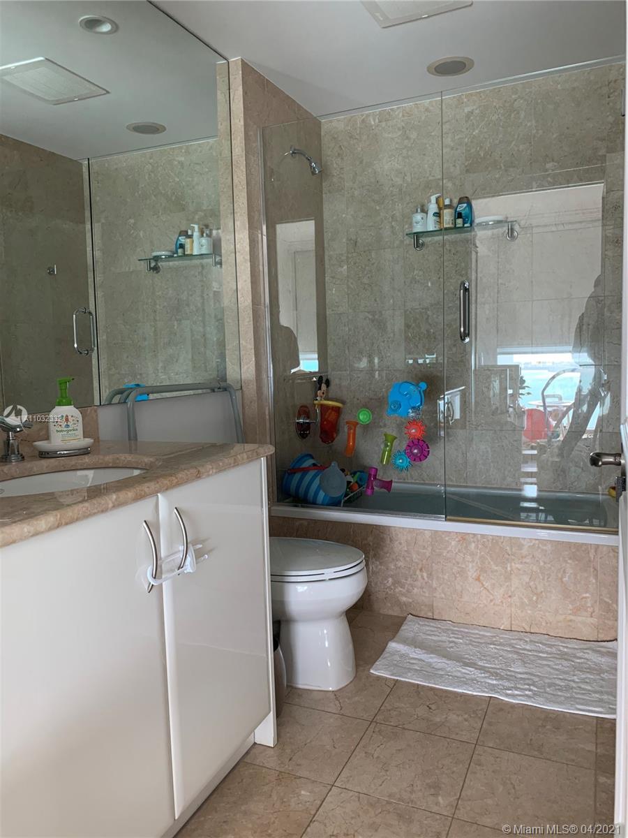 2 Bedroom / 3 Full Bathroom + DEN (Queen Murphy bed custom built and slide doors to convert it into a private room) Water views from every room. Custom made motorized roller shades and impact windows. Over sized bathroom with shower & jacuzzi, Italian kitchen cabinets, granite countertops, Sub Zero fridge and Miele appliances, wine cooler, built-in coffee maker. Private elevator to your foyer entry. Unit comes with 2 assigned parking spaces in the lobby level + storage unit. Amenities: Full service concierge, fitness center, spa, rooftop party room, infinite pool and jacuzzi, business center, kids room, 24hr valet, security, infinity pool.