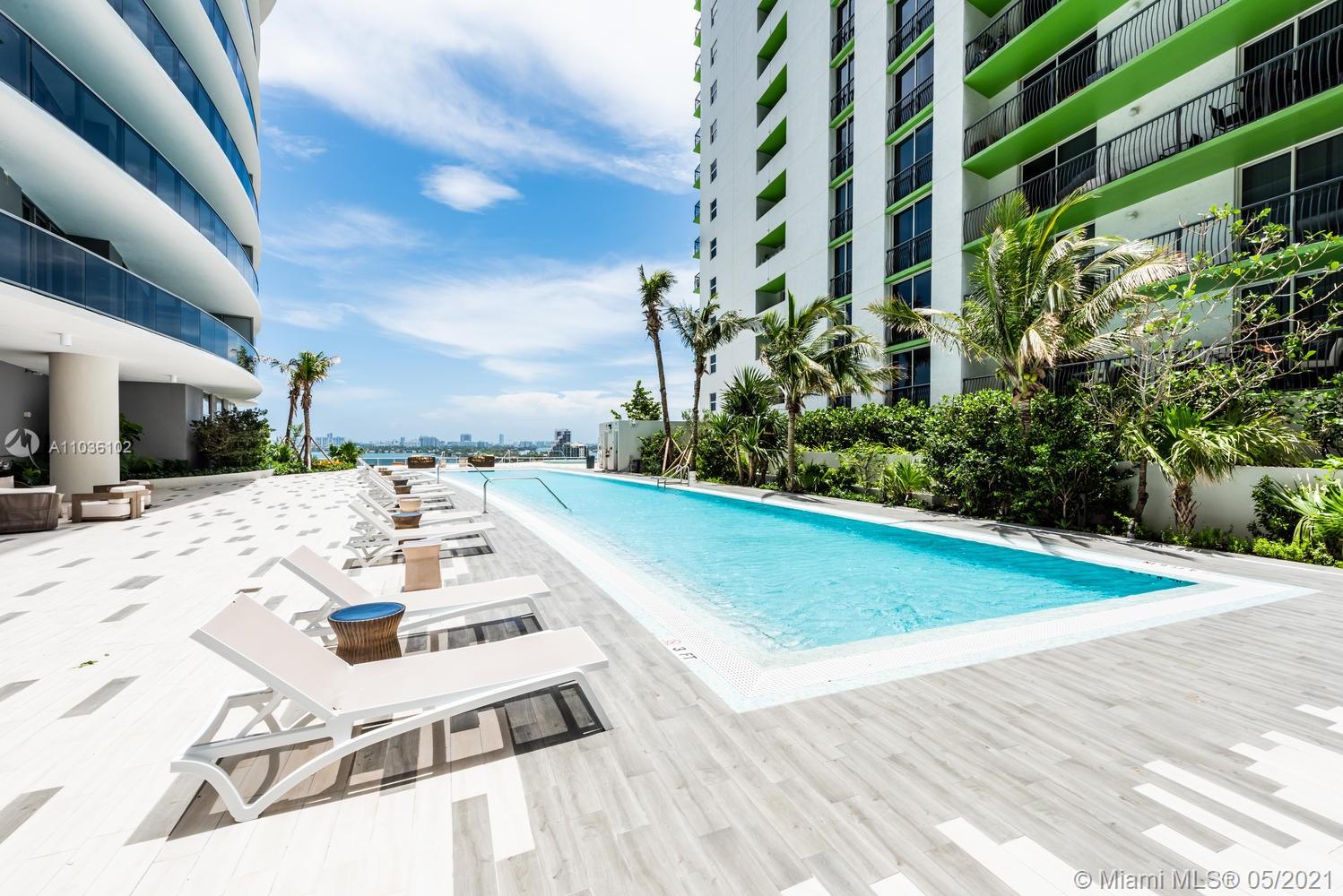 Aria on the Bay 2 Bed 2 bath, corner unit with wraparound balcony, LINE 00 BEST PRICE ON THE BUILDING , accessible from every room, and spectacular views. Ocean & bay views to the east, sparkling skyline views to the south & striking Miami views to the west. Beautifully interior featuring gleaming Italian porcelain floors, wide open quartz & stainless steel kitchen featuring Bosch appliances & custom italkraft cabinetry, fully built out walk-in closets, two master suites with an extra half bath for guests, laundry inside & more. Aria on the bay is Edgewater's best. Impressive amenities include the 24/7 doorman, valet & concierge, dual pool & hot tub decks, private yoga studio, spa, 5-star fitness center, party room, theater & more.