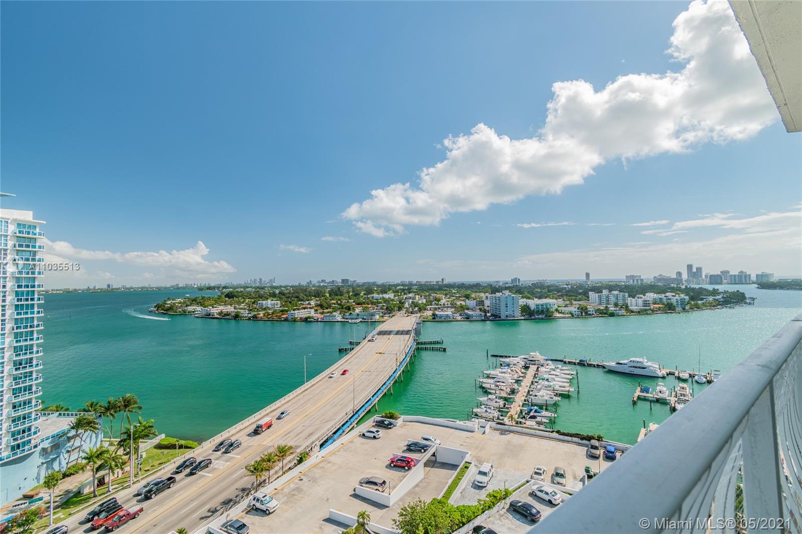 COME FALL IN LOVE WITH THIS ONE OF A KIND 2 BED/2 BATH, CORNER UNIT IN THE HEART OF NORTH BAY VILLAGE! THIS STUNNING CONDO OFFERS SOME OF THE MOST AMAZING VIEWS YOU CAN ONLY DREAM OF. ENJOY SUNRISE AND SUNSET VIEWS FROM YOUR 2 BALCONIES. FLOOR TO CEILING WINDOWS THRU OUT THE UNIT TO ENJOY THE SPECTACULAR VIEWS FROM EVERY ROOM OF BISCAYNE BAY, MIAMI BEACH & DOWNTOWN SKYLINE. UNIT FEATURES ITS OWN WASHER/DRYER, OPEN KITCHEN WITH PLENTY OF CABINETS AND COUNTER SPACE INLCUDING BAR STYLE SITTING & AUTOMATIC BLACKOUT SHADES IN LIVING AREA. ENJOY RESORT STYLE POOL, ON-SITE CONVENIENCE STORE, CAFETERIA, BEAUTY SALON, GYM. CONVENIENTLY LOCATED JUST MINUTES FROM MIAMI BEACH & OTHER MIAMI GO TO DESTINATIONS. UNIT COMES WITH 2 ASSIGNED PARKING SPACE!!! COME FALL IN LOVE AND MAKE THIS CONDO YOUR HOME!