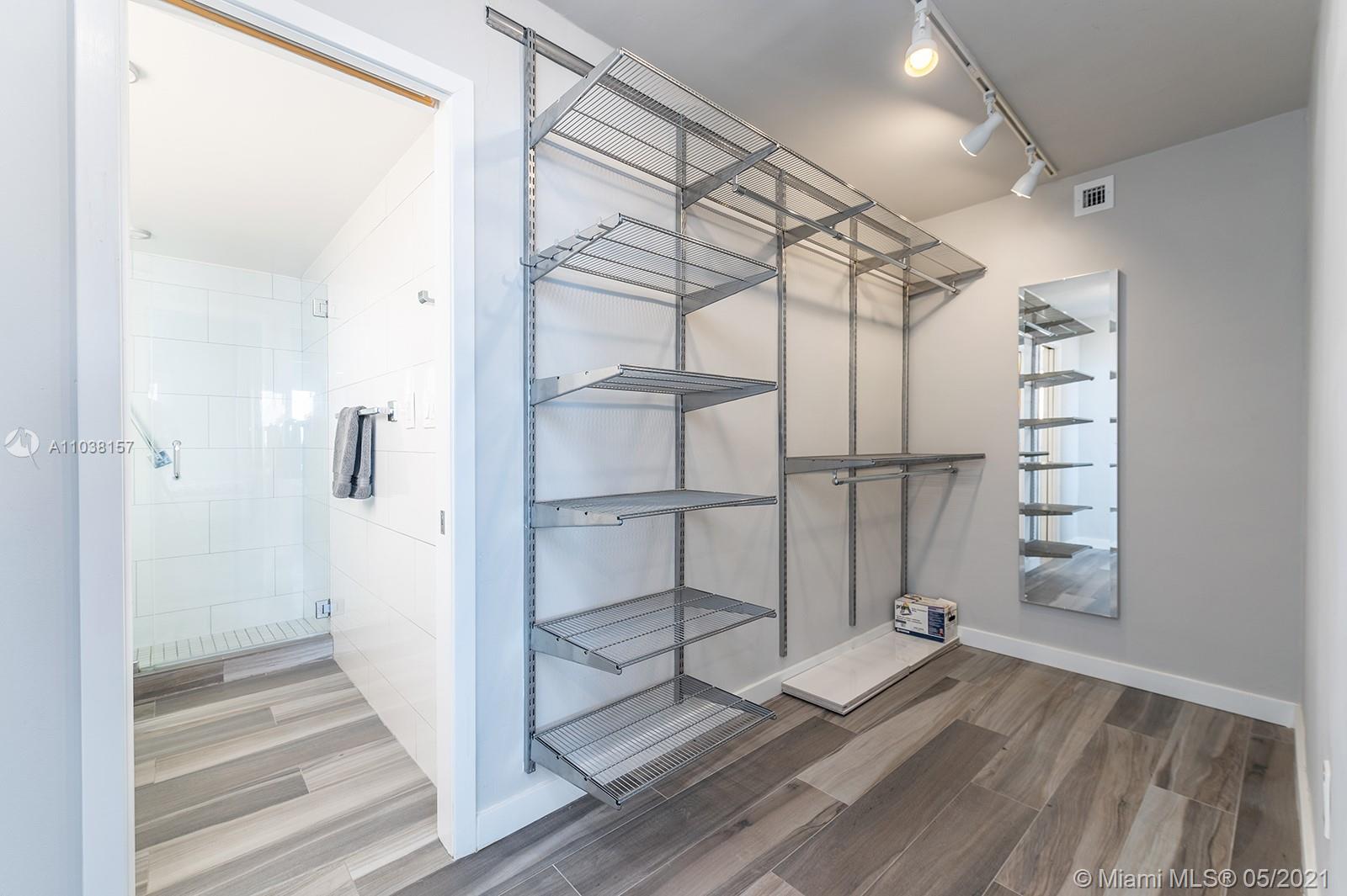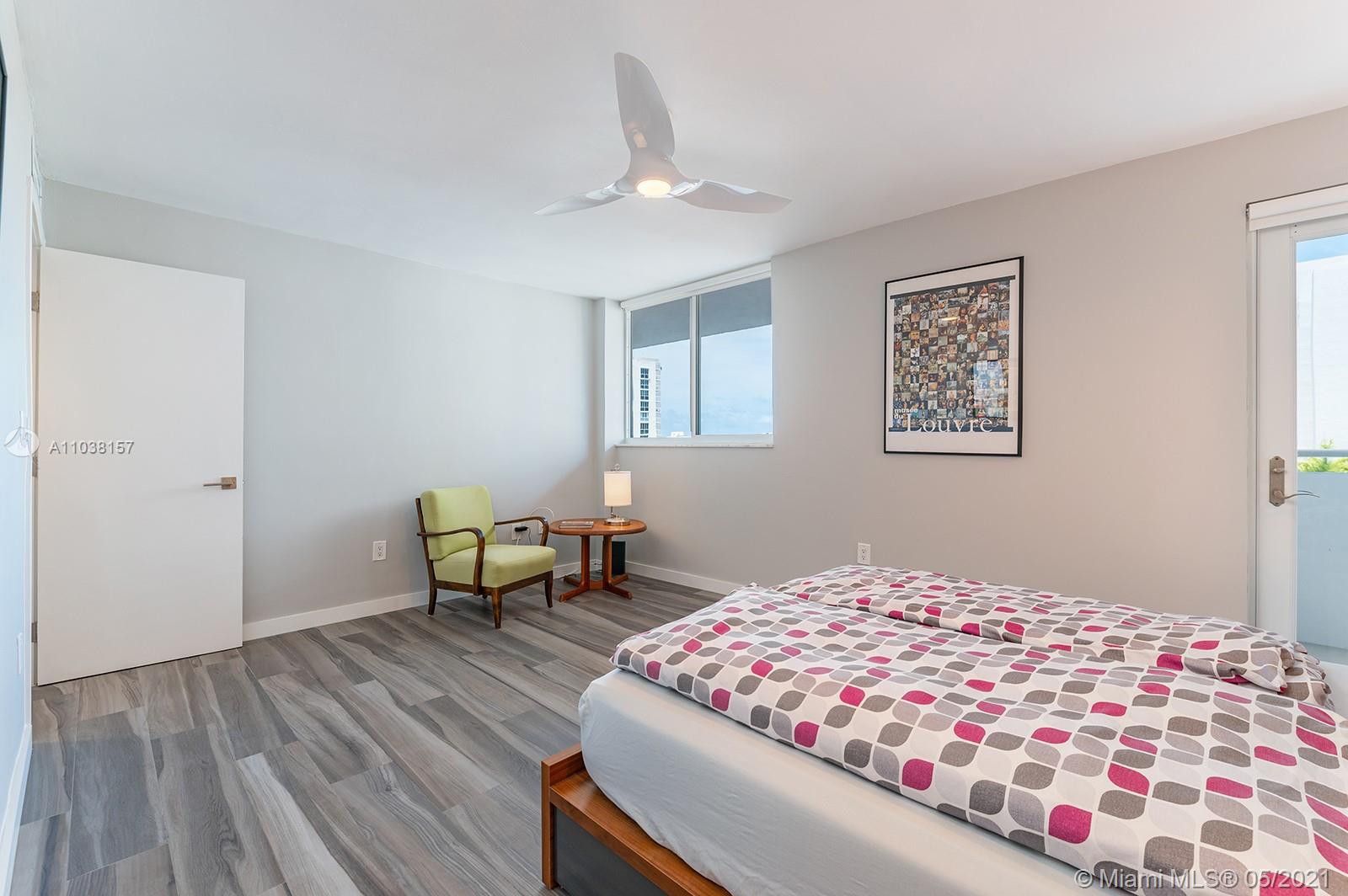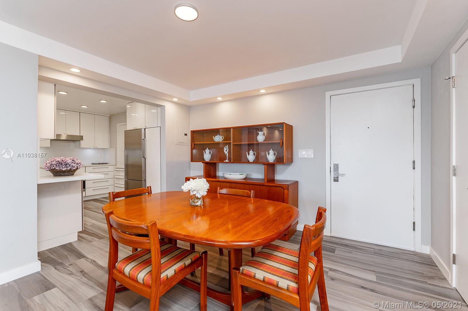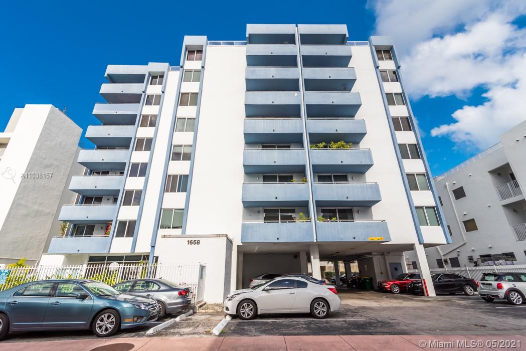 Everything you've been looking for: Space, light, completely renovated, steps to Lincoln Road! Oversized 868 sq ft 1BR/1.5BA residence has been carefully and completely renovated: Porcelain floors, modern open kitchen with custom cabinetry, quartz counters, top-of-line Miele and Fisher & Paykel appliances. Spacious walk-in shower in master bath, plus extra half-bath. Huge rooms, massive walk-in closet, built-in storage cabinets includes ultra-modern wall bed for overnight guests, custom finishes, washer/dryer in unit, new energy efficient A/C, tankless water heater, complete impact windows and doors, custom blinds. Oversized balcony with lovely views overlooking Lincoln Road West neighborhood. Pool, covered parking, low maintenance includes reserves, quiet street off Lincoln Road.