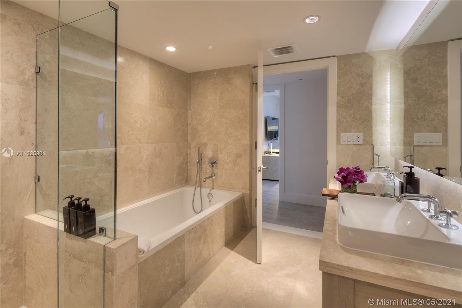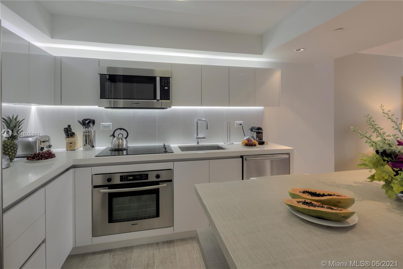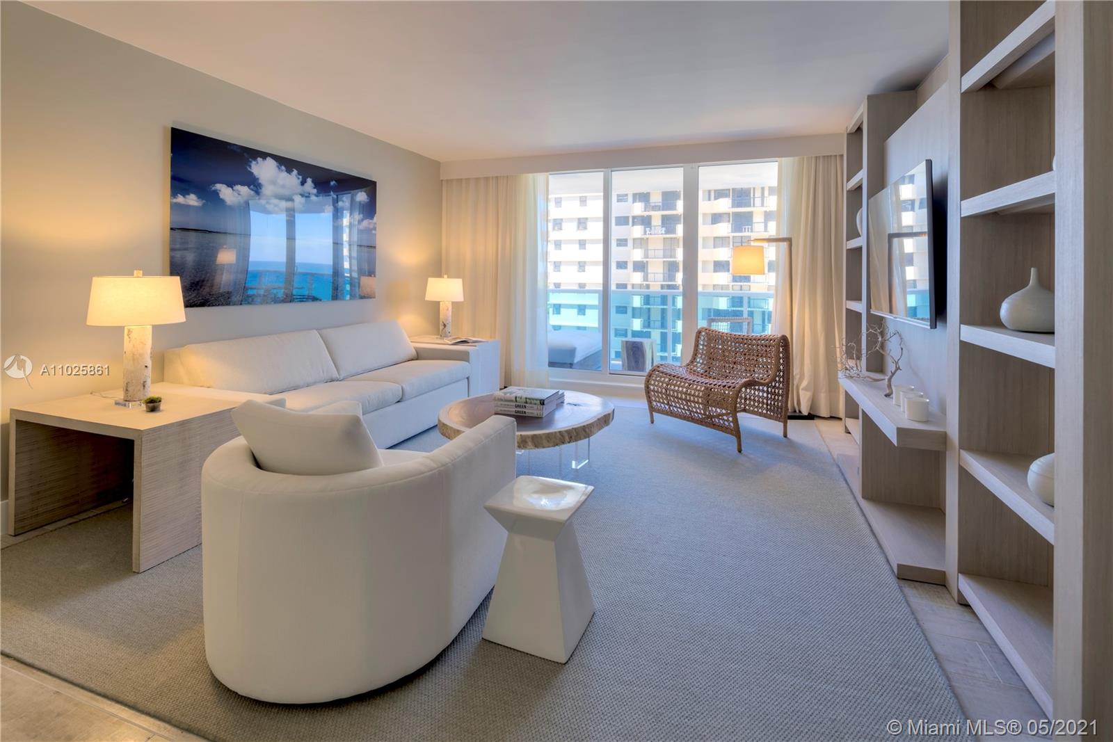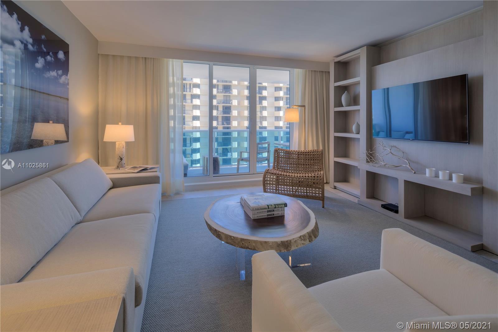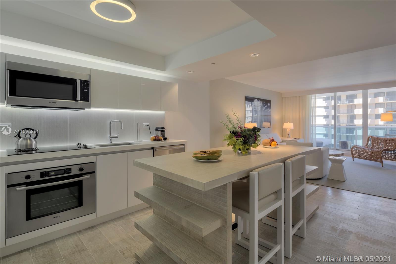 This gorgeous 985 Sq. Ft. 1 bedroom, 1 bathroom is the perfect combination of all things natural and organic in a luxurious setting. Enjoy the private fully furnished balcony complete with a custom double chaise lounge and a table set for two overlooking the Atlantic Ocean and Intracoastal. The living room has a plush white organic sofa that converts into a bed, and a gorgeous maple dining table. ItalKraft gourmet kitchen, sensual limestone bathrooms with luxurious Dornbracht fixtures. Enjoy a variety of services including a private fully-staffed residence lobby, valet attendants, personal concierge, and chauffeured Tesla SUV's. Eco-conscious amenities to include 4 pools, 4 restaurants, 3 bars, 14,000 sq. ft. gym, Bamford spa, hair salon, Soul Cycle, and mjuch more.