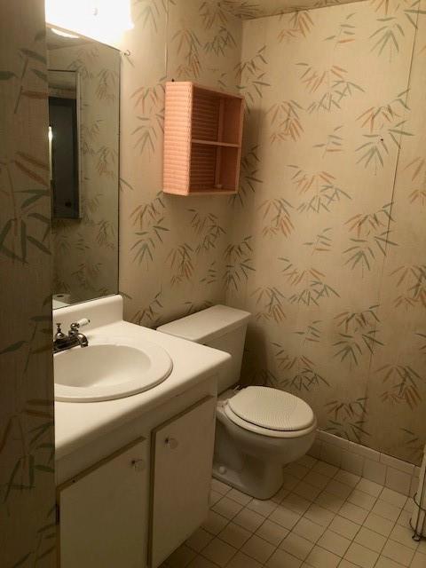 Best priced unit in Century Village 55+ community. Larger 1/1 unit with half bath. Being sold "AS IS" with no repair or replacement costs paid by seller. All original. No elevator building. Tiled patio with shutters. Rentals allowed min of 3 months and only rent one time per year. Beautiful Recreation Center with lots of amenities. Easy to show. See broker remarks.