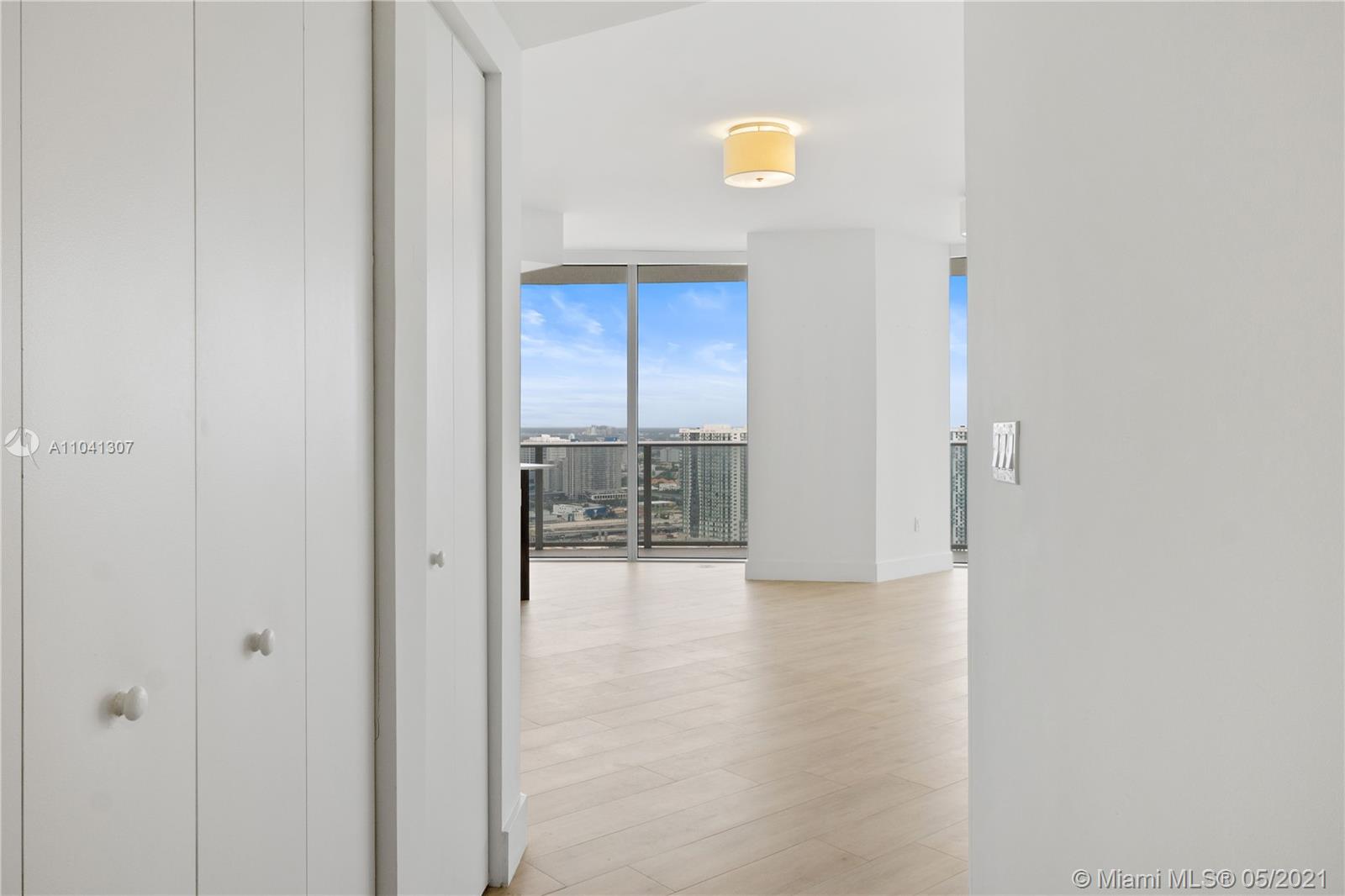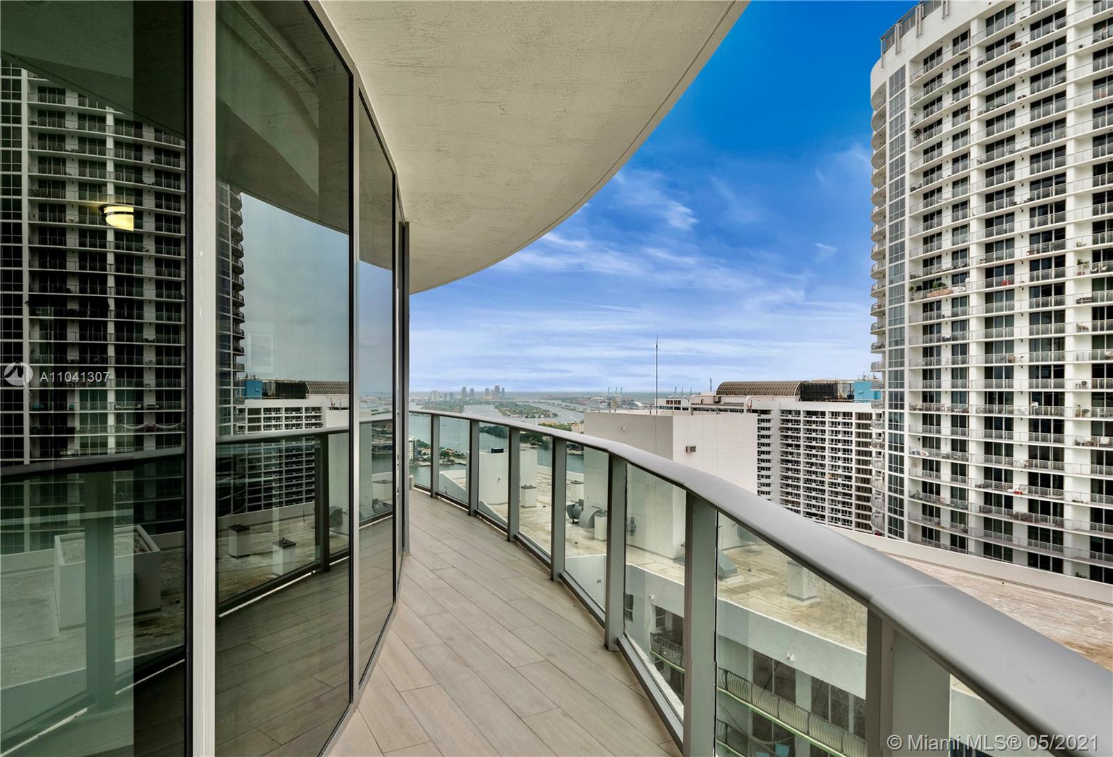 Deal Alert! The coveted SW corner line at Aria on The Bay on the 38th floor clearing building next door gives you 270 degrees of Miami skyline & Bay w/ expansive terrace! Wrap around floor to ceiling glass residence features wood-like porcelain floors, quartz counters and stainless steel appliances in kitchen, electric day shades in grand room, blackouts in bedrooms, custom made walk in closets at Miami's latest and most desirable luxury waterfront building in front of the Margaret Pace Park. Five-star resort style amenities include sunrise and sunset heated pools overlooking the Bay, BBQ, spa, private party room, business center, fitness center, yoga and pilates studio, movie theater, kid's playroom and more.