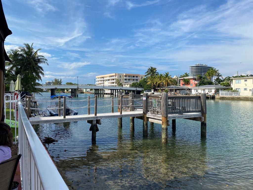 Beautiful and well maintained 2 Bedroom / 1 Bath corner unit condominium on the intracoastal canal just 3 blocks from the beach (5 min walk). Kitchen has updated cabinets and granite countertops with stainless steel appliances, including new stove. Laminate flooring and hardwood floors throughout. A/C is 2 years new. Relax at the common area gazebo overlooking the intracoastal. Pets are welcome here. Investors dream - rent right away, no restrictions. Dock usage permitted with association approval. Take the Free Trolly to Collins Ave. Close to parks, shopping and many restaurants.