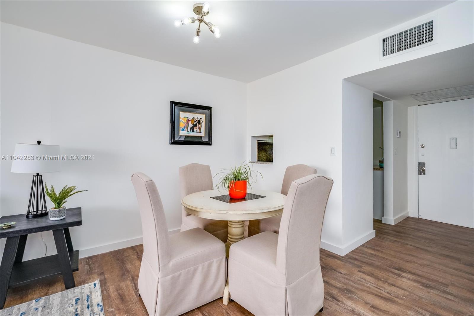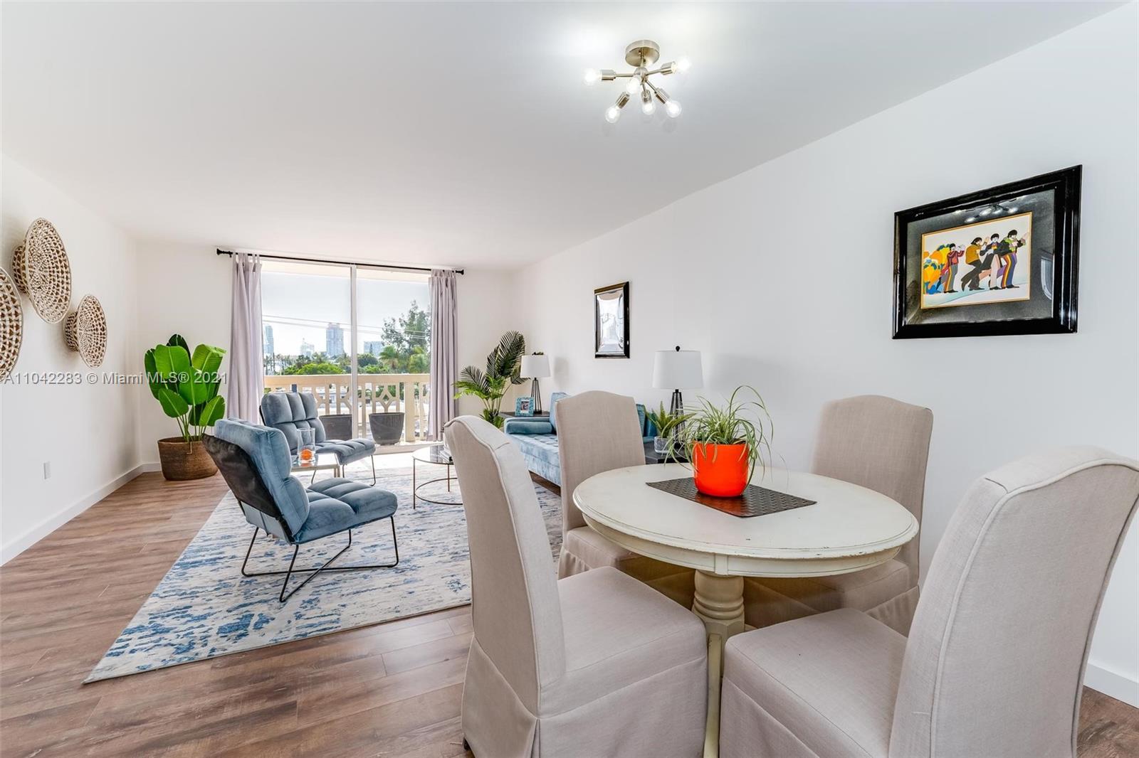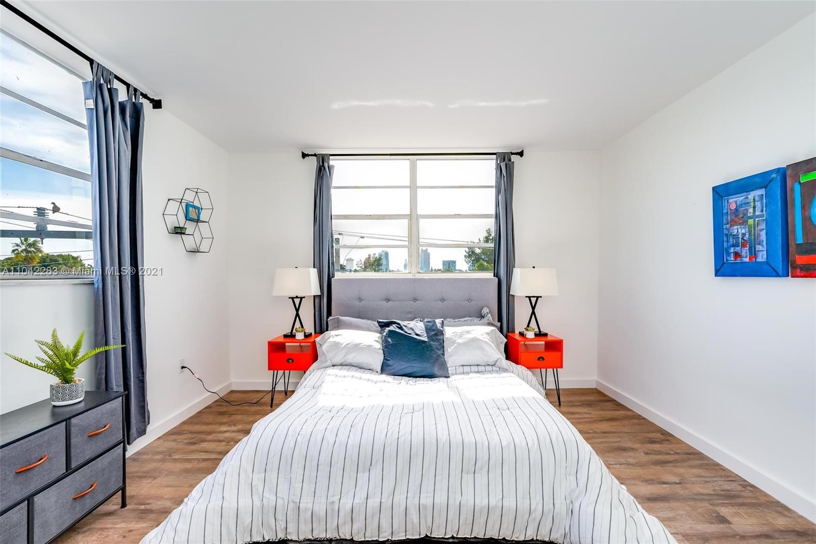 Newly decorated top floor corner unit with pretty views of Miami Beach. Comes with one assigned gated parking space (not covered.) Apartment has in-unit washer/dryer and pretty new wood vinyl floors throughout, new shower, new double-vanity sink and new oven. Sun-drenched South-facing unit with balcony and large walk-in closet in bedroom. Gated elevator building located only 1 block from Flamingo Park and 3 blocks to the beach. Pet friendly building with reserves.