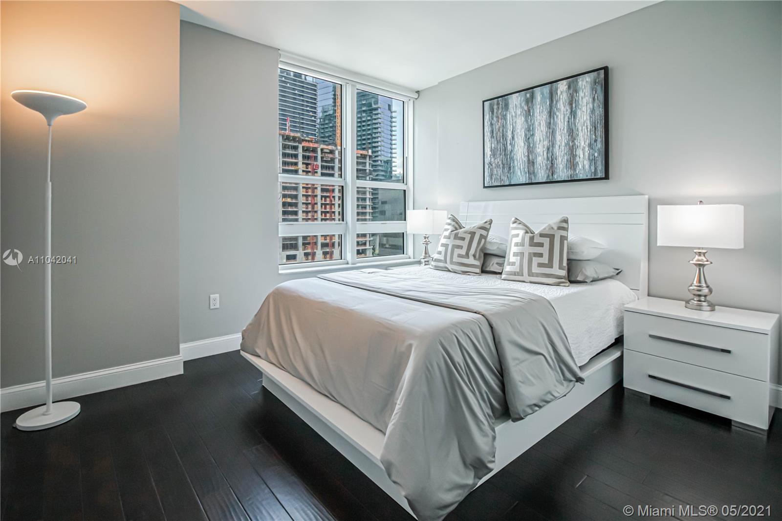 Live Limitlessly in this delightful 17th floor unit at The Plaza Brickell overlooking the Brickell city scape. This classic 2 bedroom layout is perfect for first-time buyers looking for an affordable spot in the heart of Brickell. The kitchen has a pantry & peninsula breakfast-bar that continues into the main living space. A perfectly carved out area give you space to entertain with wining and dining in mind. The West-facing balcony gives you the best of both worlds: breathtaking sunsets and the dazzling lights of Brickell city living. Plus, you're just an elevator ride away from all the action: get your exercise in by the bay just across the street or visit one of the hundreds of restaurants within walking distance in Brickell & Downtown.