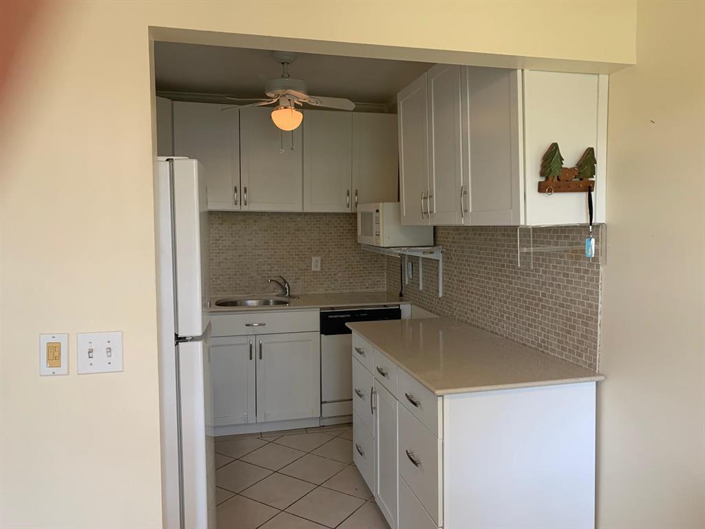 Light & bright first floor unit with many updates and two full baths! Bring your pet - one small dog or cat (15lbs or less) allowed. Renovated kitchen with white Shaker style cabinets, tile back splash, tile floors, dishwasher, and new refrigerator. Lovely master bedroom with French doors leading to enclosed lanai. Pretty new front door. Updated windows. Wonderful building patio area with grill. New roof 2021.