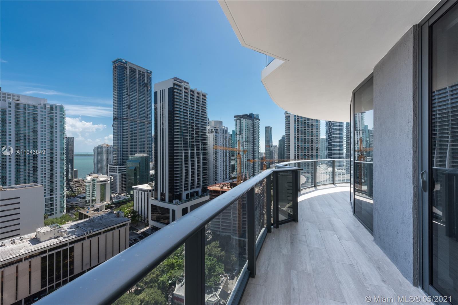 Spacious and beautiful unit in Brickell Heights East Tower with great layout. 2 Beds + DEN, 2 full baths. (1280 SqFt) Top of the line appliances and finishes. Great views overlooking the Bay and Brickell Skyline from it’s spacious and wrap-around balcony. All porcelain floors throughout. Blinds/Blackouts and 1 assigned parking space. Amenities include: Concierge 24/7, 2 pools (1 rooftop pool), jacuzzi, gym, steam room, sauna, business center, media room, children play-room, theater. Just steps from Mary Brickell Village, great restaurants and Brickell City Centre.