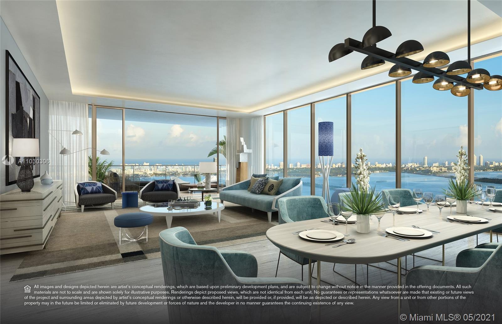 Middle tier residence at Elysee, the first luxury boutique building in Edgewater. Offering 4B + Den/5.5b, easily convertible to a 5 bedroom. Living room and master bedroom w/unobstructed Bay views that opens to an 8-ft deep balcony. An entertainer's dream! Rising 57 floors above Biscayne Bay, Elysee features two residences per floor, all flow-through, private elevator foyers, Italkraft kitchens & Wolf GAS cooktop. Amenities include sunrise & sunset pools, fitness center, 30th floor Sky level w media, grand dining room, lounge & more.