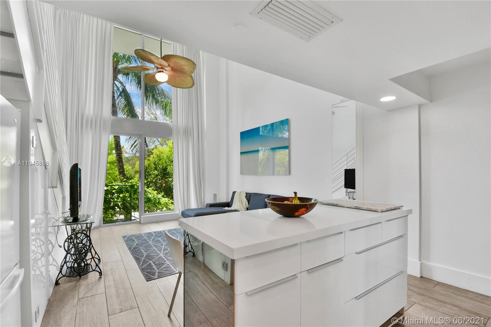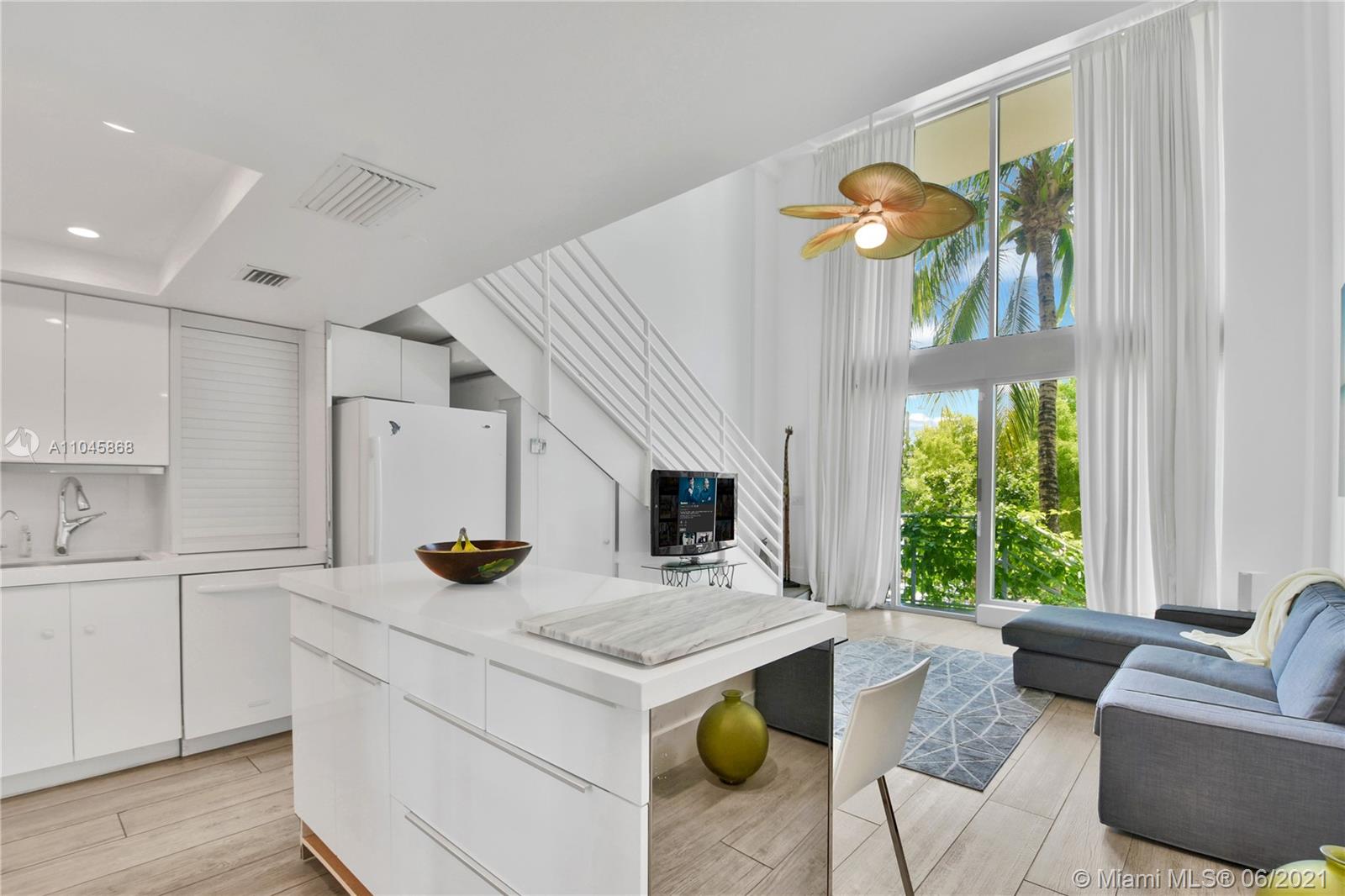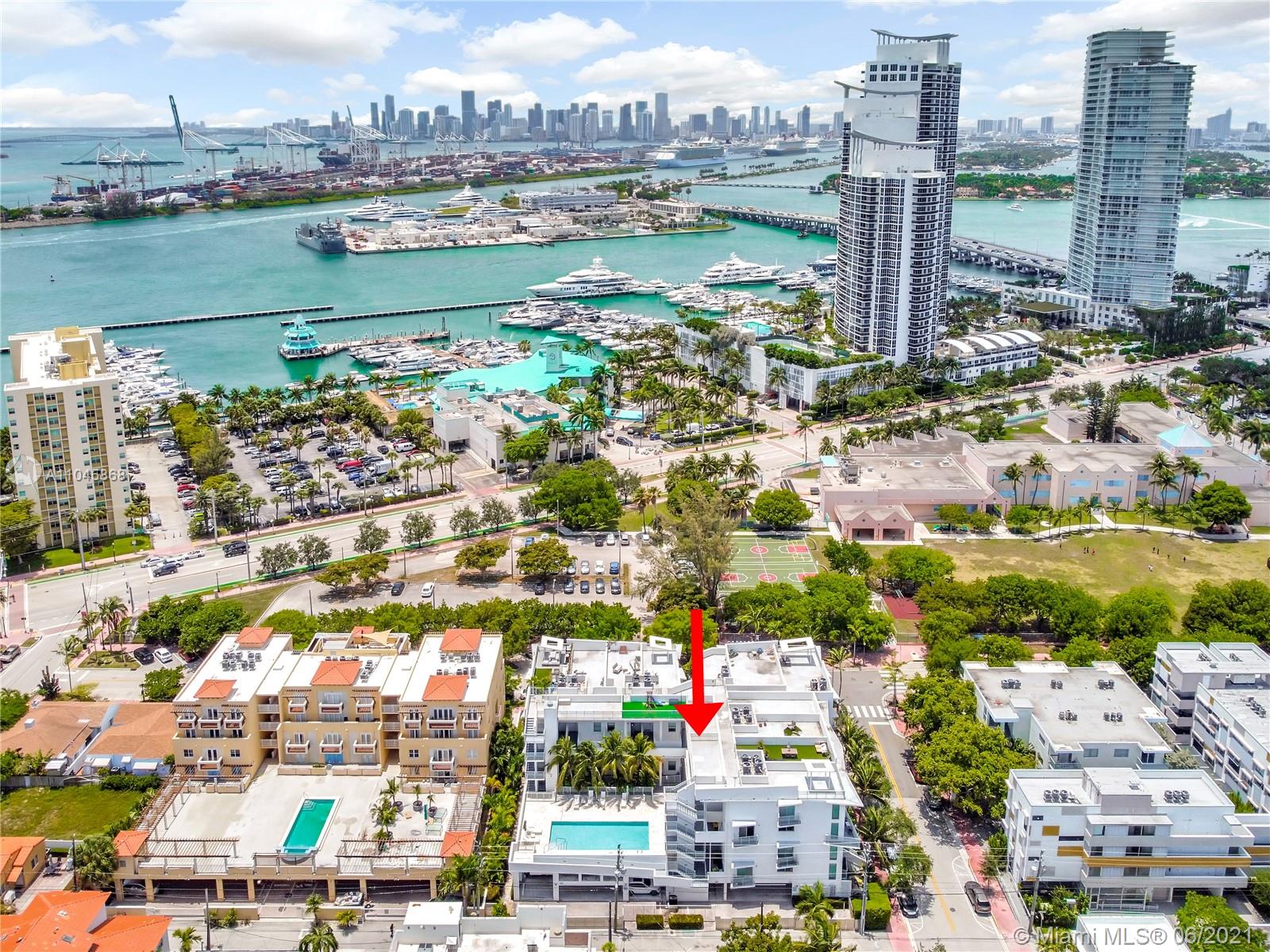 REDUCED!!! Amazing Rooftop and Garden unit. Watch the sunsets through 18-foot floor-to-ceiling impact windows. A Boutique building with only 20 units, a pool, and 2 covered parking spaces. Located in one of the hottest areas in South Beach. Walk to the beach, marina, dining, grocery, S.Pointe Park & 'A' schools! 2 large dogs are welcome.