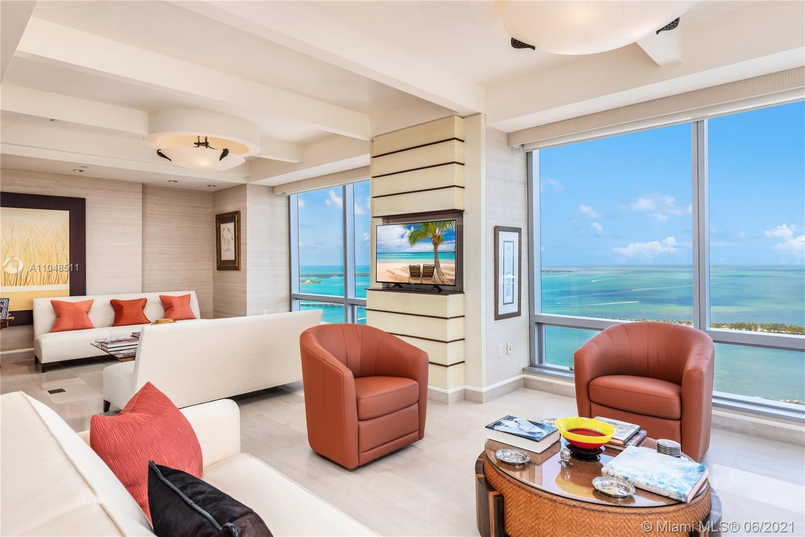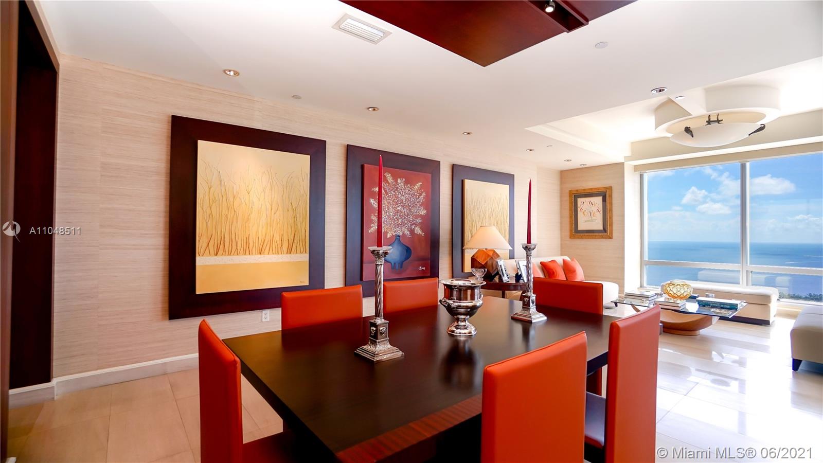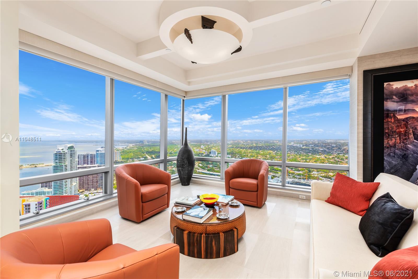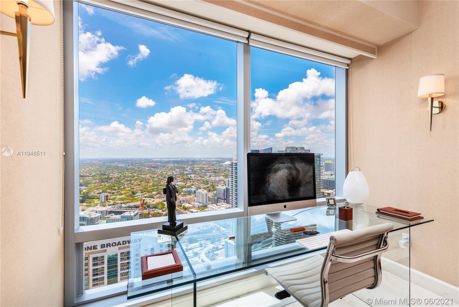 Exclusive Lifestyle only Four Seasons Residences can offer. Turnkey, 55th floor 2 Bedroom/ 2.5 Bathroom corner unit with wrap around, breathtaking floor to ceiling panoramic Biscayne Bay and city views. 2,240 sqft per owner. Elegant & beautifully appointed residence: Italian design furniture, custom wall units and high-end finishes throughout. Foyer entry, formal dining & living room with floor to ceiling windows and marble floors. Well-equipped spacious & bright kitchen with Poggenpohl pearwood cabinets, breakfast nook, & terrace access. Large bedrooms, Master with spacious walk-in closet. First Class Amenities include 24 hour concierge, valet, two heated pools, jacuzzi, poolside cabanas, restaurants, wine room, business center, party rooms, 50,000 Sqft Equinox fitness center & Spa.