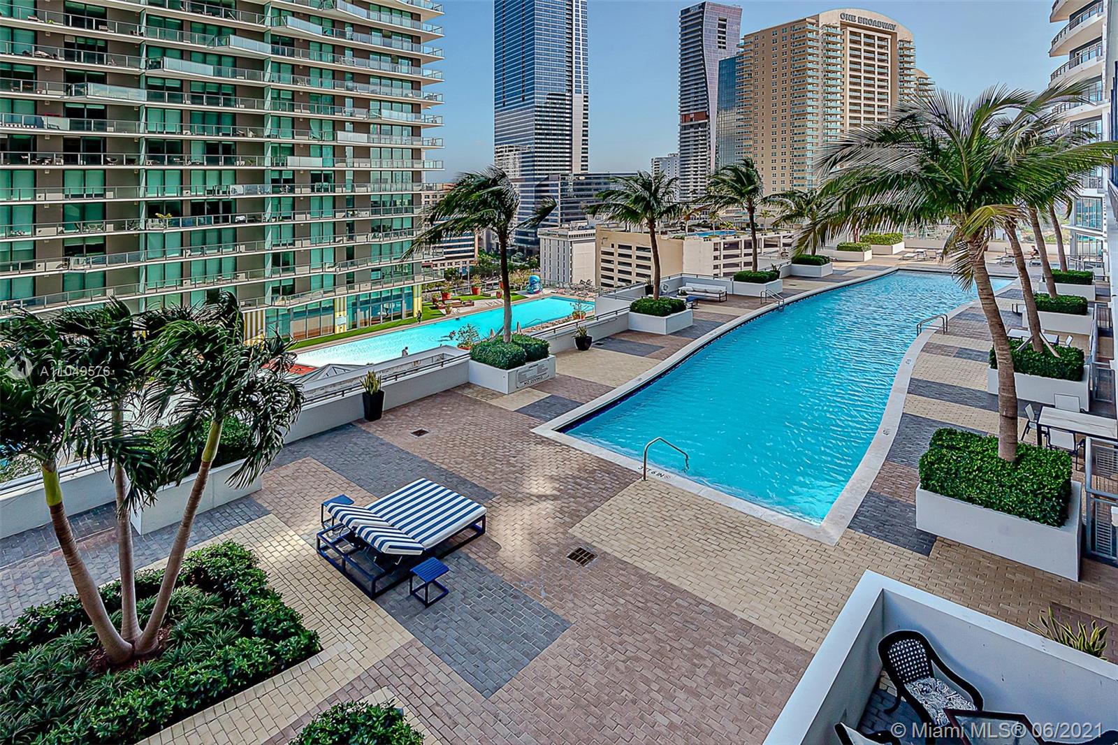 1bd/1.5ba loft with east facing views of the water and Brickell. Features included tile floors, upgraded white kitchen, custom closet, custom blinds w/d ss appliances and an extra 1/2 bath. Maintenance includes basic cable, internet, water and 1 garage parking. Amenities included, gym, pool, sauna/steam and more. Walk to the metro mover, train as well as Publix and shopping.