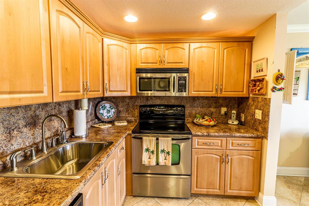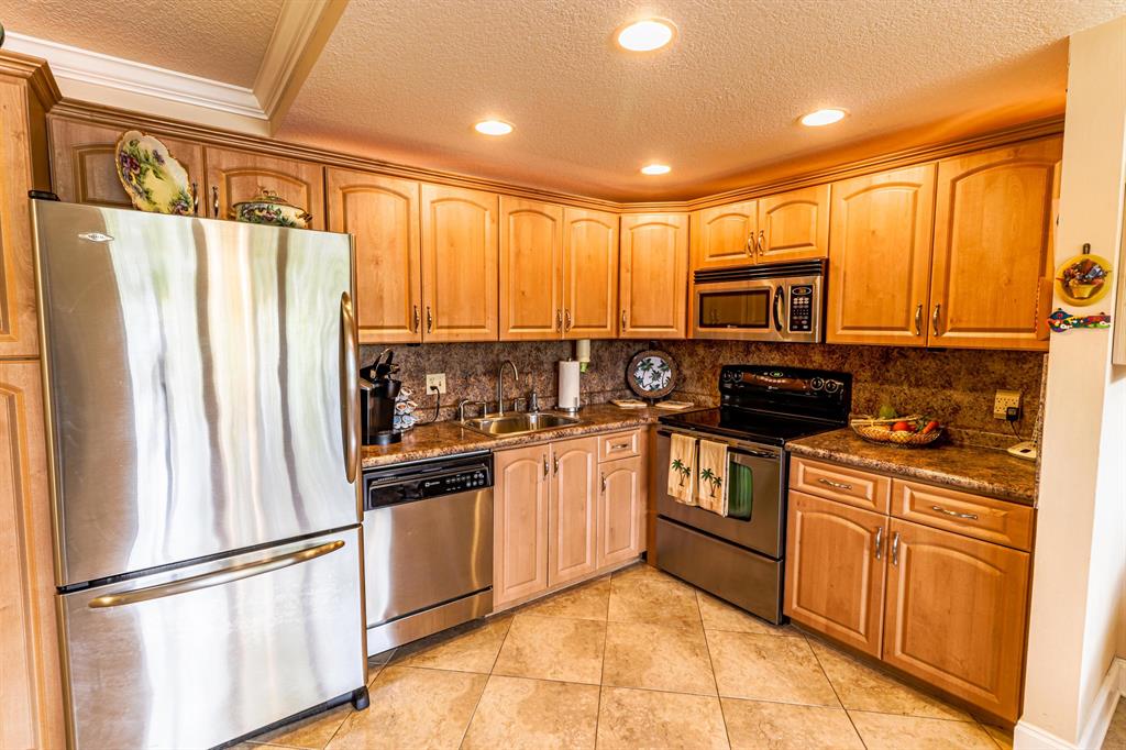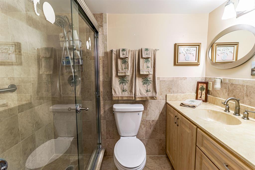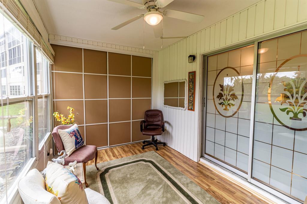 You'll experience convenience and charm in this Century Village condominium. Here you'll find an open-concept floorplan featuring diagonal tile flooring, crown molding, and updated fixtures and finishes throughout. Open kitchen features custom cabinetry, granite countertops, and stainless steel appliances. Owner's suite features a beautifully updated en suite bath and terrace access. Enjoy extra space in the enclosed terrace, offering room for additional seating, dining, or for a hobby room or home office. Enjoy a long list of great Century Village amenities, from the clubhouse with fitness center to the performance theater. The amenities continue outside with twelve tennis courts, twelve shuffleboard and bocce ball courts, and an outdoor pool perfect for escaping the Florida heat.