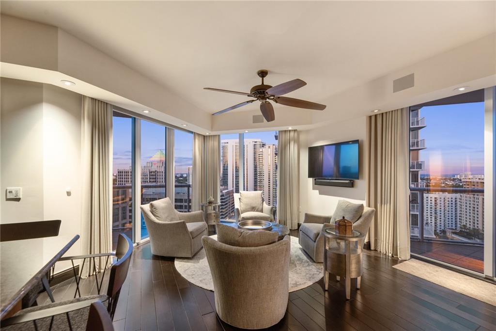 Welcome to the much desired Park model at Las Olas River House. Upon entering the private foyer your eye is drawn to the great living room. A 25x25 space with floor to ceiling windows providing wide views from sea to sunset. Four large balconies offer space for dining & relaxation while enjoying sunny days & starry nights. Over $100k in improvements including electric blackout blinds, built-in Sonos system, office/guest murphy bed & credenza, & upgraded AC with Ecobee climate control. 3bed3.5bath with formal dining, wet bar with ice maker, eat-in kitchen and lounge. Kitchen boasts dual full size Sub-Zero fridges & a wine cooler. All SS appliances. Numerous building upgrades & renovations abound without concern of special assessment in this financially stable white glove service high-rise.