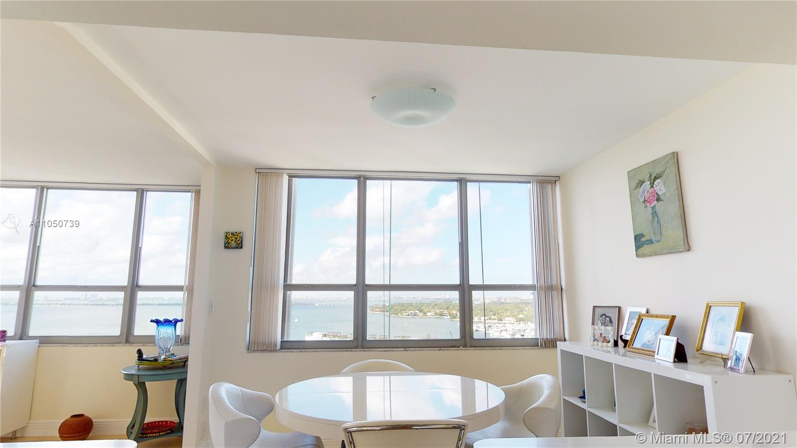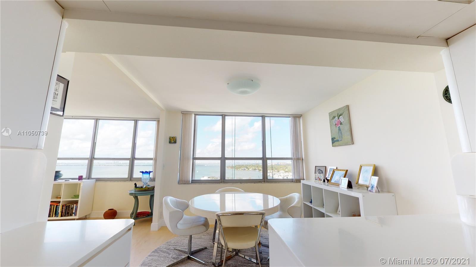 40 YR re-certified and well underway for clearing 50 YR in 2022. Clear blue skies, abundance of natural light, spacious rooms, ample storage, beautiful bay and marina views. Porcelain tile floors, impact windows/doors, ensuite bathrooms, HUGE balcony, and TONS of storage. Building renovations are underway-NEW hallways (completion 12/21), entry doors, lighting, wallpaper, elevators, fire sprinkler system, AC and more. Perfect location to enjoy the best of the Beaches and MIA. Everything you want to see or do-minutes away. Pet friendly building, and you can install a washer/dryer in the unit.