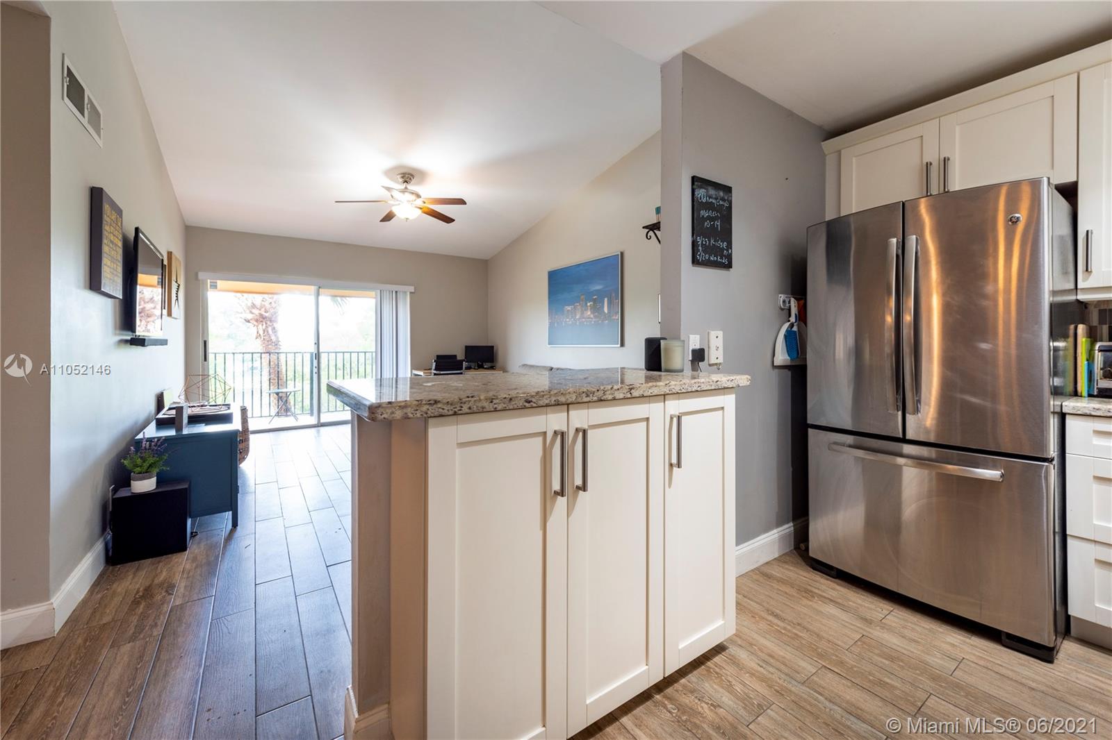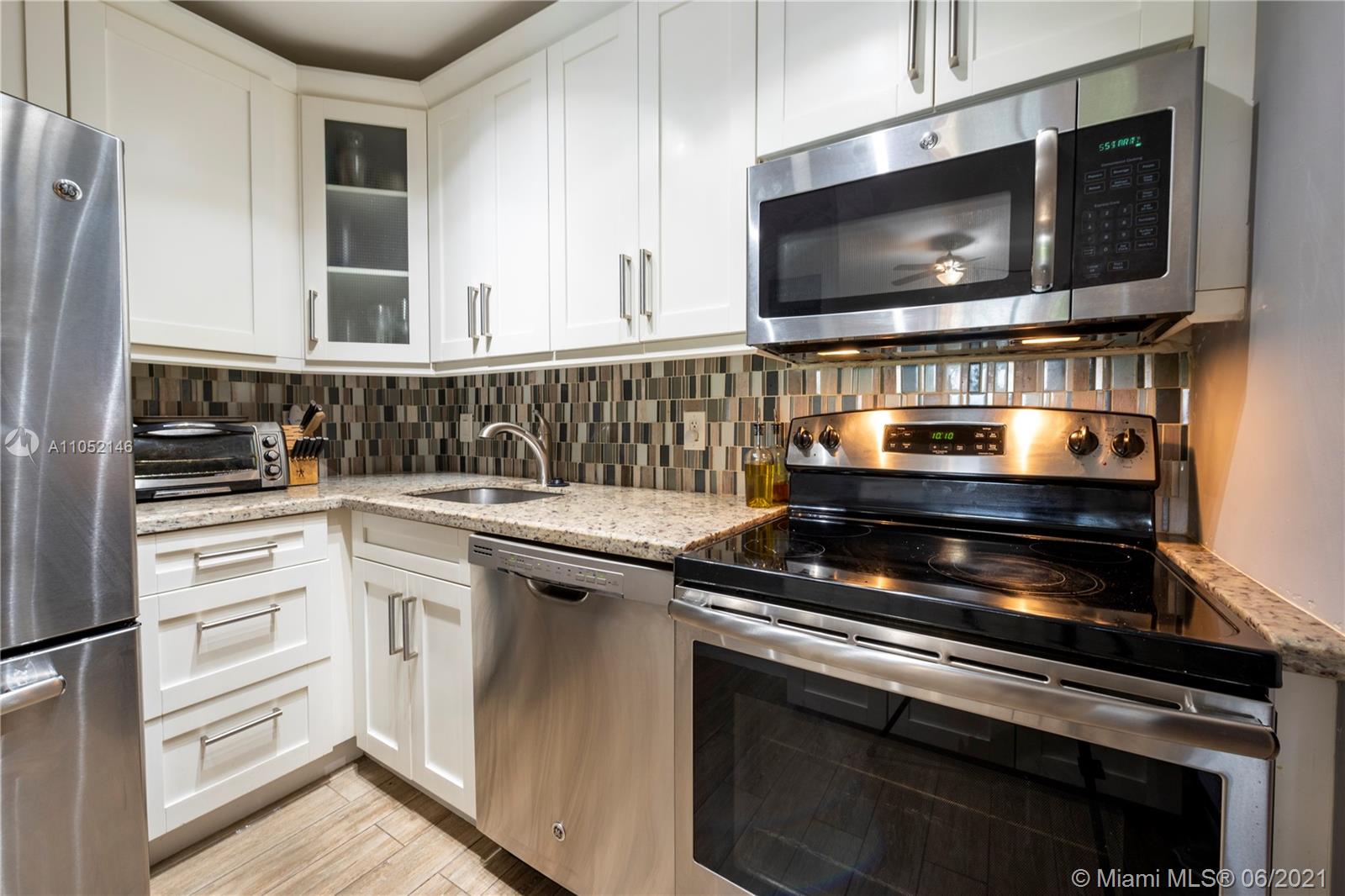 BACK ON THE MARKET! SELLER HAS REPLACED ALL PLUMBING WITH PERMITS. Come experience this beautifully updated condo with 2 bedrooms, 1 bathroom, balcony with Lakeview, and large WASHER AND DRYER. Kitchen features newer cabinets, granite counter tops, and stainless appliances. Bathroom features double sinks, subway tile backsplash, new mirror and new light fixtures. Porcelain wood like floors through the entire home. HOA includes water, building exterior, trash, and amenities which includes tennis court, gym, pool, and car wash area. Ok to lease 1st year of ownership.