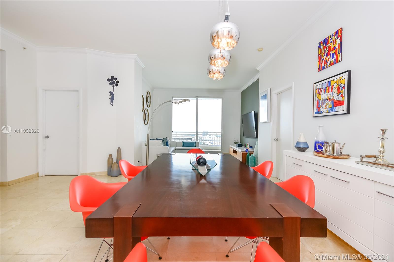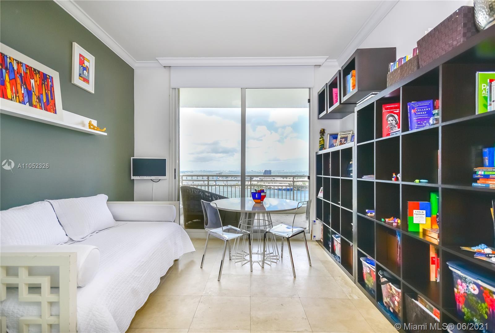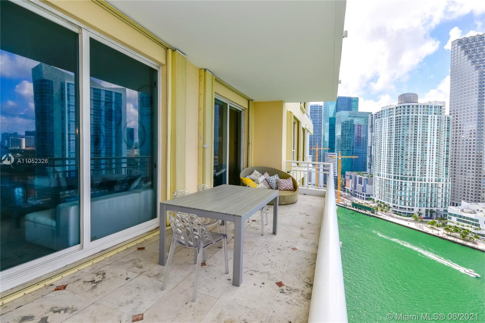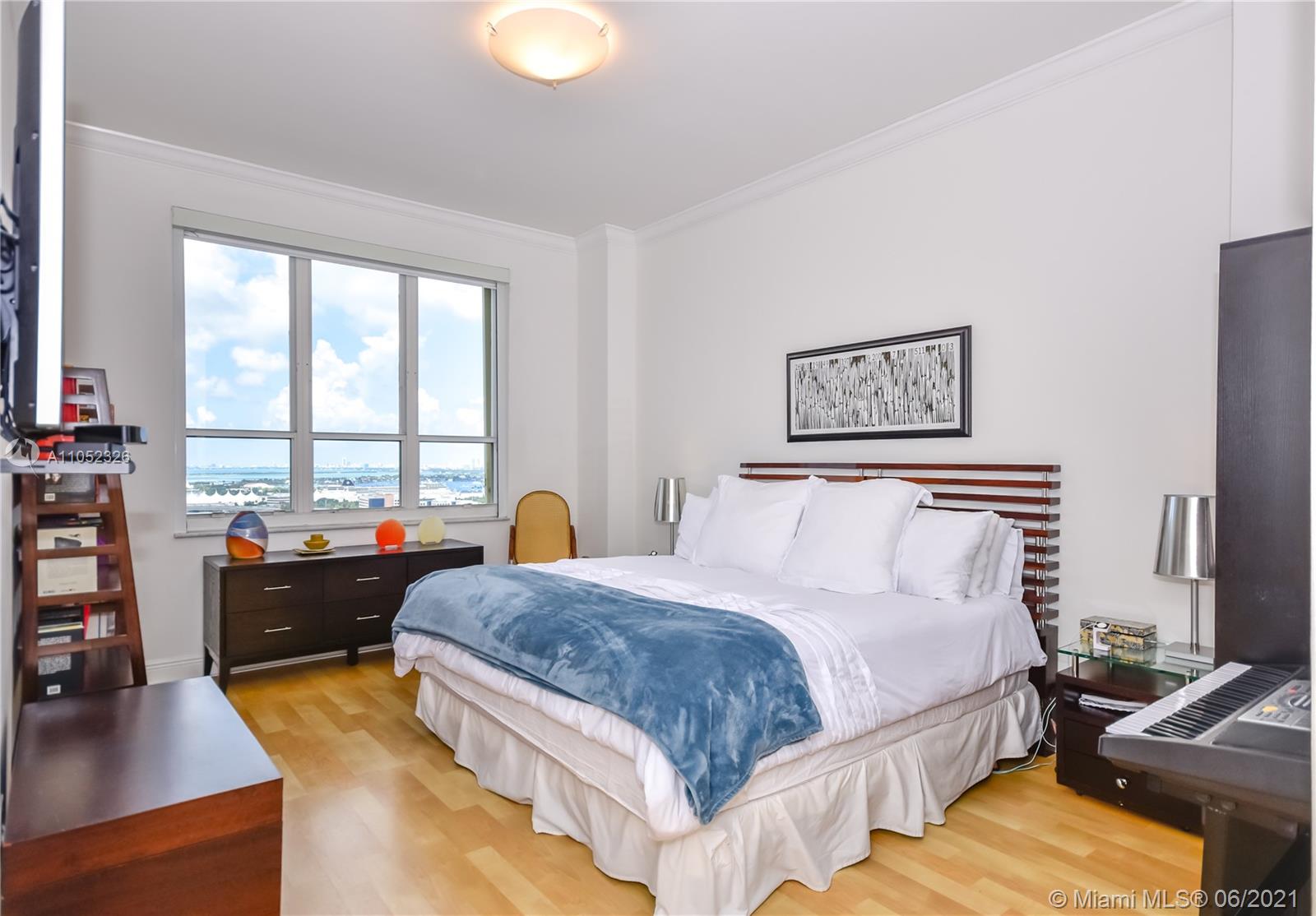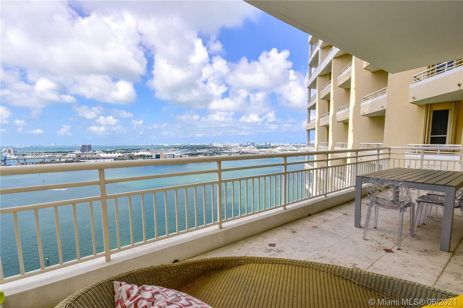 Breathtaking bay views from this 3 bed 2.5 bath unit in the exclusive Brickell Key, a private island that offers children’s playground, park, restaurants, deli market, etc. Full service condo with concierge, pool, BBQ area, clubroom, squash court, business room, gym, sauna and valet. 2 assigned parking spaces. Pest control, basic cable and internet provided by the condo association.