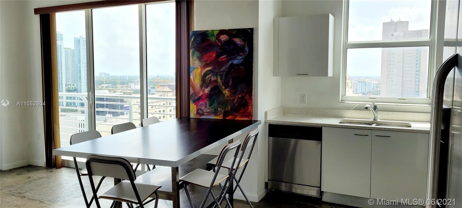 Beautiful 2/2 Loft-style condo in high floor with great views of the city. Excellent location in the heart of Miami downtown. Corner unit with both bedrooms enclosed for privacy, concrete floors, concrete ceiling, European kitchen cabinets, washer & drier in unit, 10 Ft ceilings, hurricane impact windows and sliding doors in balconies. Amenities include: 2 pools, one is a rooftop pool and the other one is in the ground floor, jacuzzi, sauna, party room, fitness center, 24/7 security. Walking distance to shops, dining and entertainment. Close proximity to public transportation, entertainment, Miami World Center, Miami Dade College, Brightline train, one block from Bayfront, the Miami Arena and across from the Metro Mover Station.