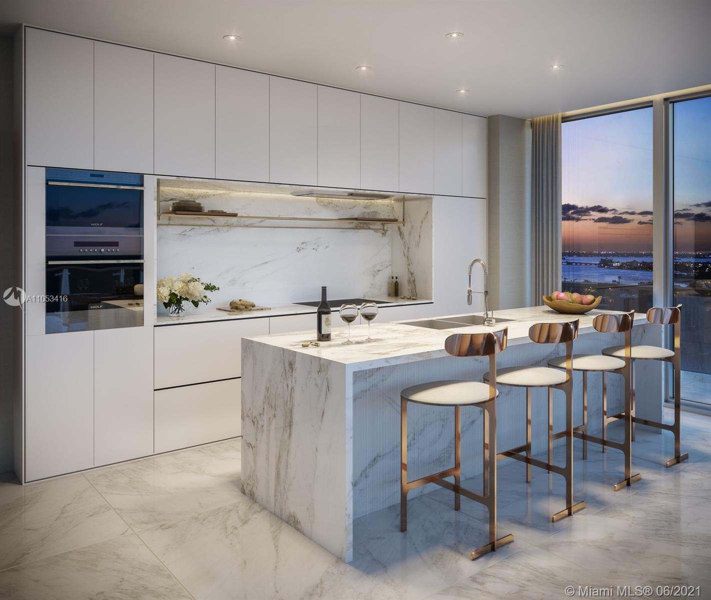 On the sand of Millionaire's Row - Miami's most beautiful and exclusive strip of beachfront sits 57 Ocean. Residences feature floor-to-ceiling windows. 12 Ft deep terraces, open floor plans, private elevators and foyer. Top of the line poliform kitchen and bathrooms.. SubZero and Wolf appliances. 57 Ocean will provide the residents a connection with nature. From the indoor and outdoor gym, My Equilibria and Technogym training equipment, Meditation Gardens and Zen library, Chef kitchen, outdoor grill area and Ocean front bar; Residence 1005 views of the intracoastal offers the most stunning sunsets to inspire ever day living. DELIVERY FALL 2021