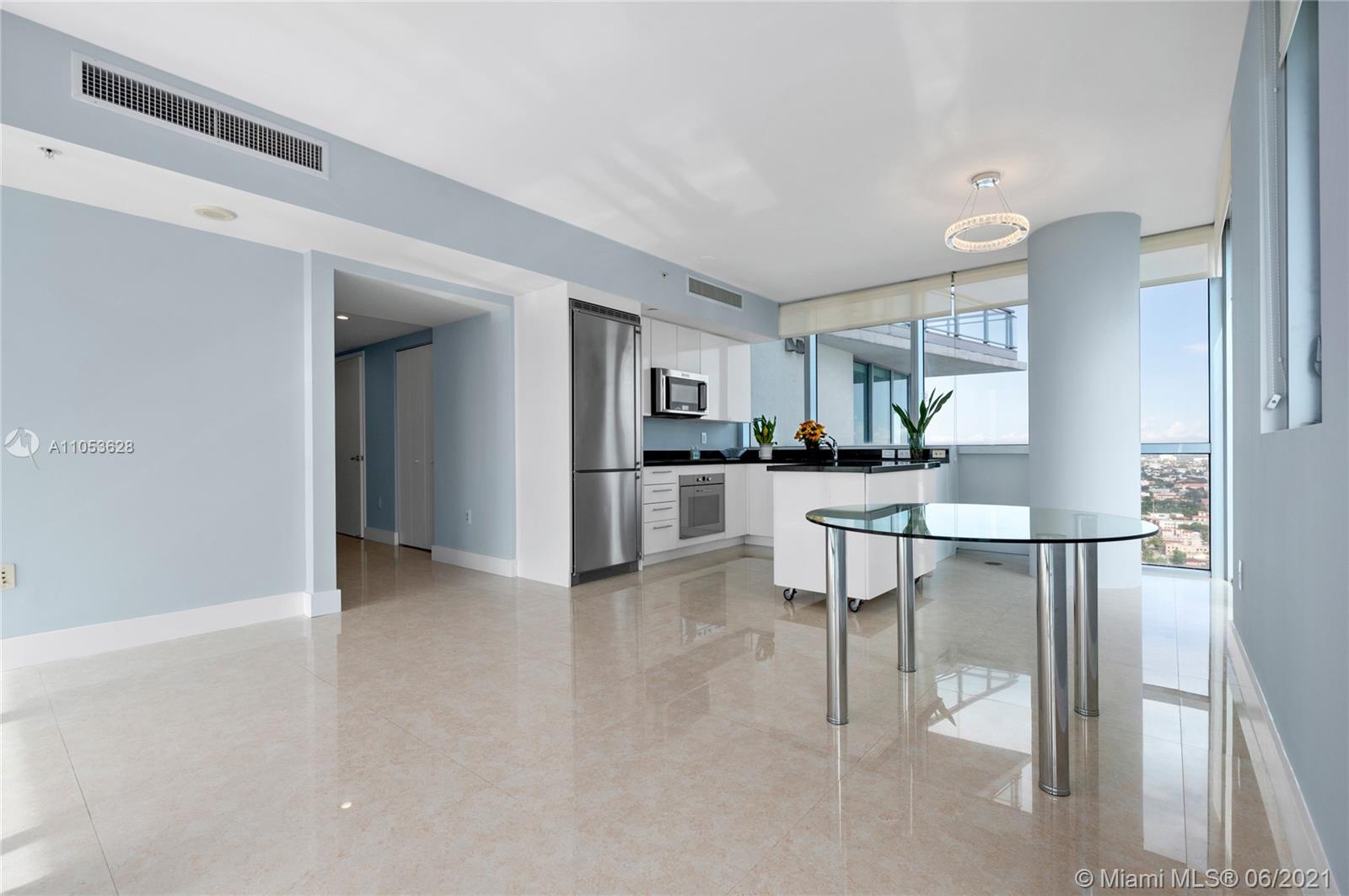 Completely updated luxury condo on desirable 10 line of the MINT condominium with 2 bedrooms, 2.5 baths on the 35th floor with great views of the Miami River, Biscayne Bay, Downtown Miami, and Brickell City Center. 24” x 24” tiles throughout the unit, including both balconies, stunning recently renovated baths, custom built-in closets, white screen shades in all windows, with full blackouts in the bedrooms, motorized shades, newly replaced cooktop, microwave and washer and dryer, modern lighting, and much more. Two balconies, gated community, with 5-star amenities. Ready to move in. Easy access to I-95, walk to Brickell City Center, Whole Foods and several high-end restaurants.