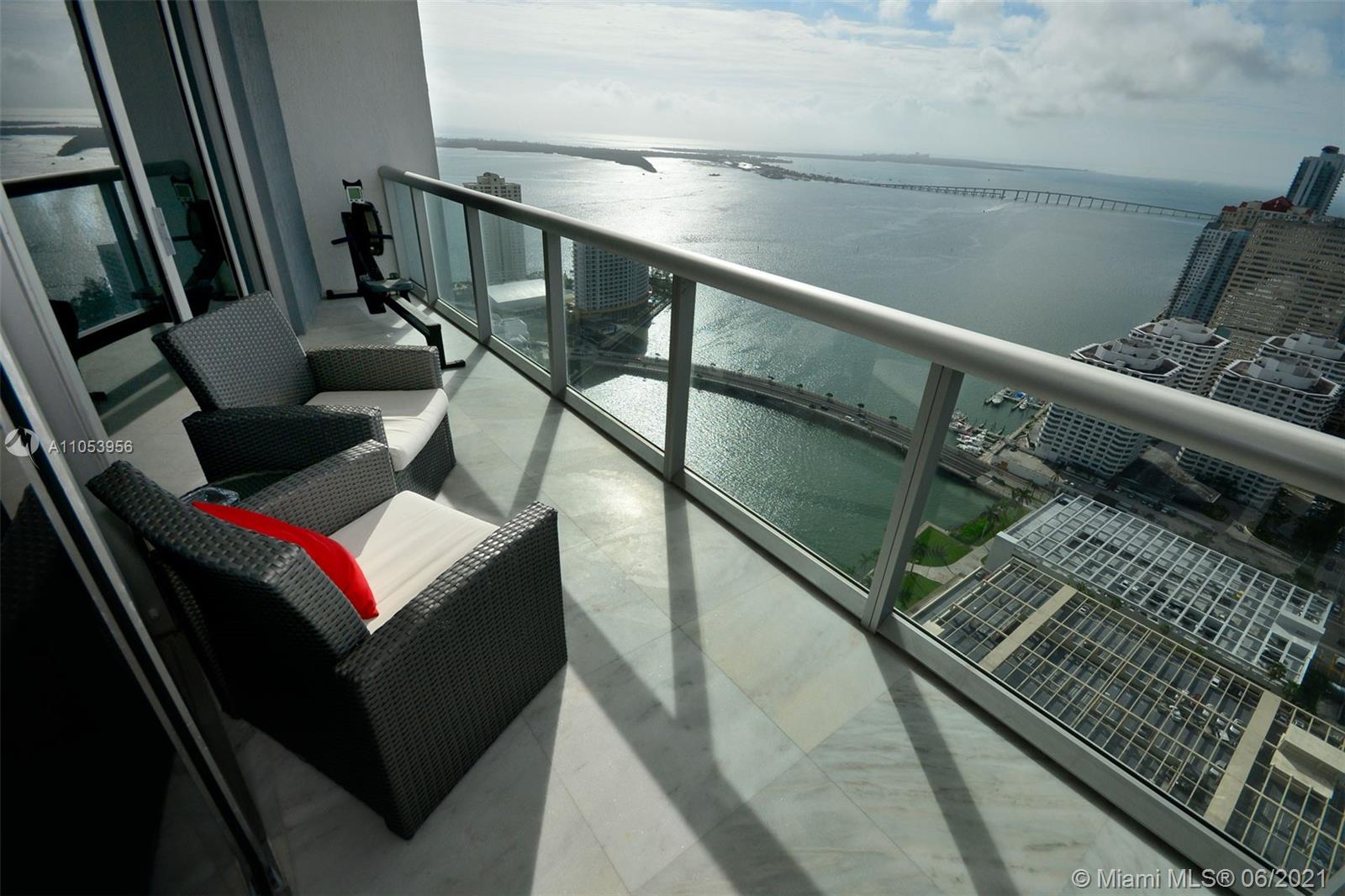FOR SALE 2 BEDROOM 2 BATHROOM + DEN, 43TH STORIES ABOVE BRICKELL SKYLINE. BREATHTAKING WATER AND CITY VIEWS WITH FLOOR TO CEILING GLASS WINDOWS EVERYWHERE. EUROPEAN KITCHEN COUNTERS CREATE AN UPSCALE DINING AREA.WALKING DISTANCE FROM BRICKELL CITY CENTER, FINANCIAL AREA, RESTAURANTS AND SHOPS. BEST AMENITIES IN BRICKELL BY FAR! ****UNIT INCLUDE 2 ASSIGNED PARKING SPACES****. ***UNIT IS RENTED UNTIL OCT.19/2021 AT $3900/MONTH. BUYER MUST HONOR THE LEASE***
