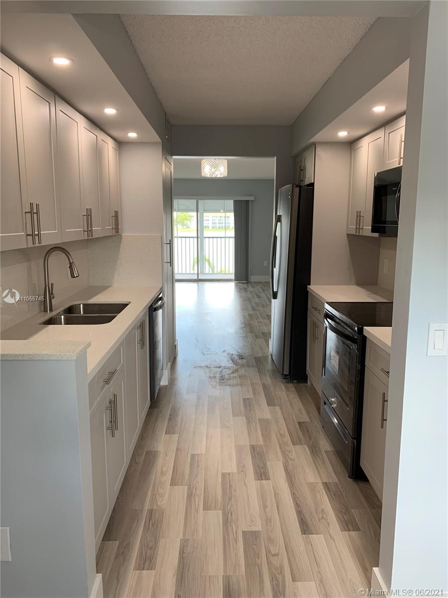 Beautifully remodeled 2/2 in the heart of Pembroke Pines. Come enjoy the spectacular lake view that will have you feeling like you're on vacation year round. Unit is completely updated. New floors, new bathrooms, new kitchen, new stainless steel black appliances with Quartz counter-tops. Brand new tankless water heater & washer/dryer combo plus newer AC and more!! Association includes water, cable and internet. Plus gyms, indoor and outdoor pools, golf, tennis, clubhouse with many activities and free transportation. Owner/Agent.