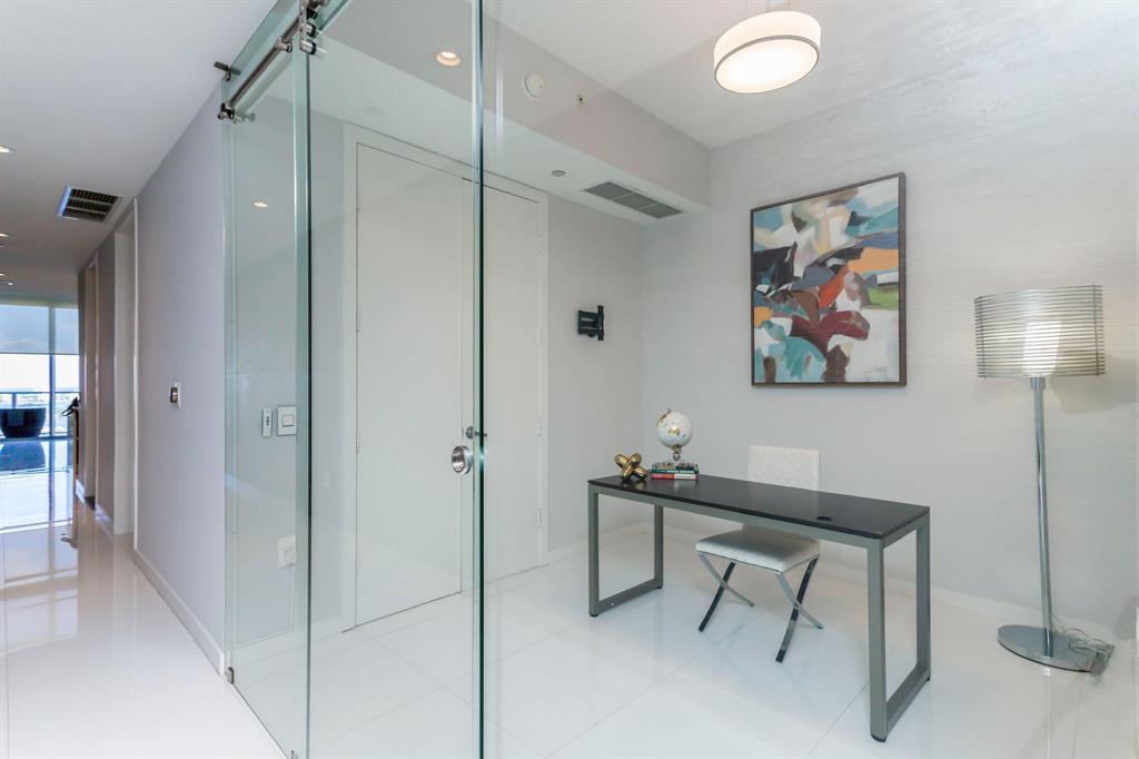 Spectacular Unit on the 37th Floor with unobstructed view of Biscayne Bay, the city and the ocean. This is a 2 story, 22' ceilings Unit set up as a One-Bedroom and 1 enclosed glass doors Den with porcelain tile floors, Venetian finished walls, Designer lighting, Viking appliances and modern and elegant furniture. Master Bedroom has a frameless glass enclosed shower, dual vanity and built in walk-in closet and Wall to Wall framed glass overlooking downstairs. Upper and lower automatic window shades. Washer & Dryer included. The building provides excellent amenities including concierge, 24/7 security, valet, swimming and lap pool, SPA, fitness center, basketball court, billiard table, ATM, yoga and more. Walking Distance to FTX Arena, Adrienne Arsht Center, Frost Museum, Bayside and more.