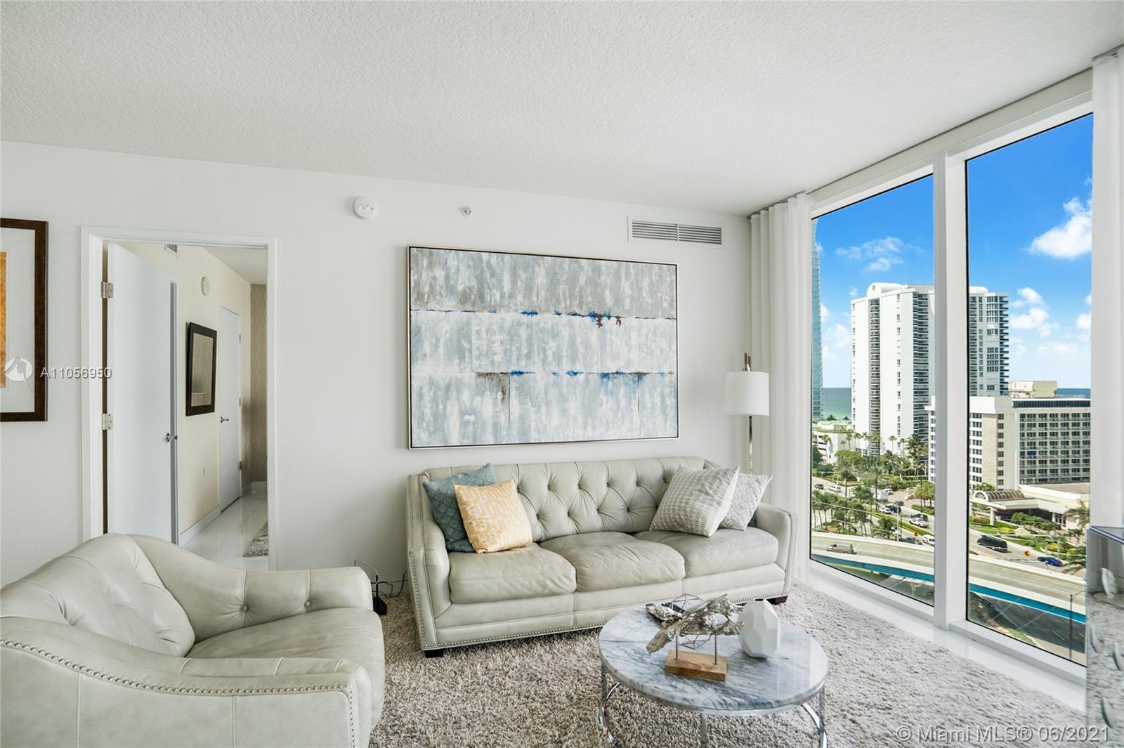 Beautiful and available immediately! Faces east with views to the south and north. Features white porcelain floors throughout entire unit, high impact sliding doors and windows, modern window treatment, open kitchen, master suite with walk-in closet, master bathroom with tub and separate shower, wrap around balcony. Bright with neutral colors. The building offers clubhouse, gym, spa, pool, cabanas and beach club . Also offers 24-hr valet/security services. 1 assigned parking space and second valet space. Pedestrian promenade with shops, restaurants and more! The beach is just across the street and St.Tropez offers access to a beach club (Sole) for its residents! The apartment comes with a storage unit!
