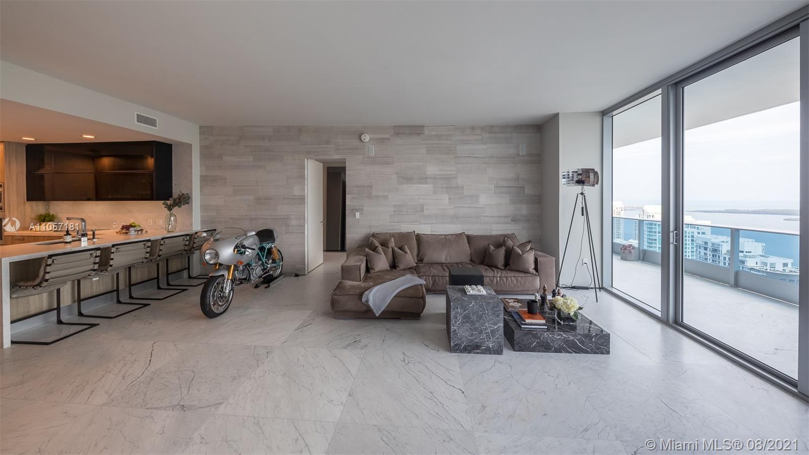 Very special and sophisticated 2 BD/2.5 BA with open water views has been customized beyond your expectations. Located on 51st floor and turnkey with a custom wine wall storage in den, tastefully upgraded with oversized 36" Italian Carrara floors, Pierro Lissoni designed Salvatori stone walls, Snaidero kitchen with Subzero & Miele appliances. New upgrades include a double vanity in the master bathroom, Creston Automated Smart Home System, Smart Lighting & A/C Control. The Epic is located at the epicenter of Brickell world-class shopping, dining and the best entertainment the city has to offer. The apartment is situated on the highly desirable '04' line with tall unobstructed water and skyline panoramas of Miami. Epic living means enjoying on-site first-class dining, SPA and amenities.